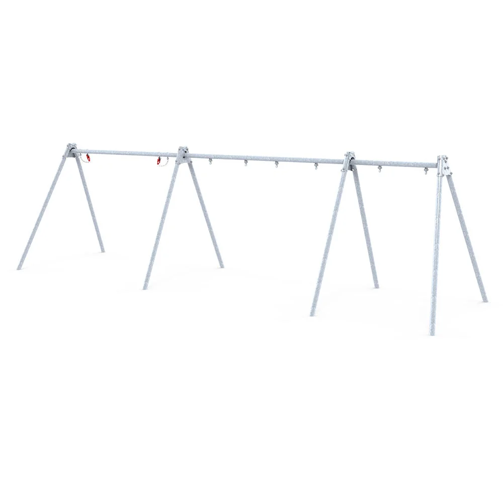 Modulärt metallgungstativ med plats för tre gungor och en fågelbogunga.