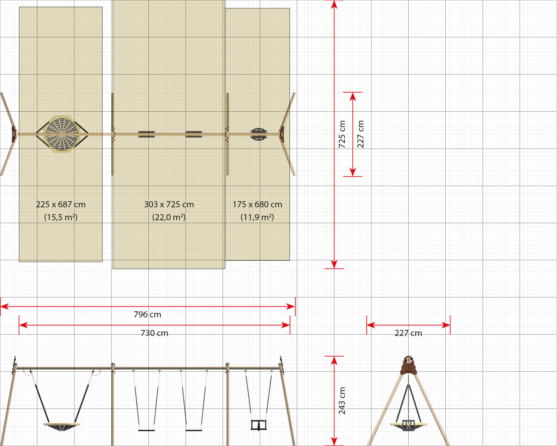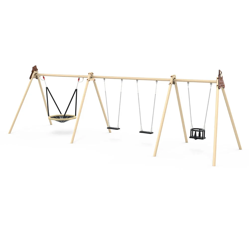 Modulärt gungstativ med säkerhetsstolar, fågelbogunga och babygunga.