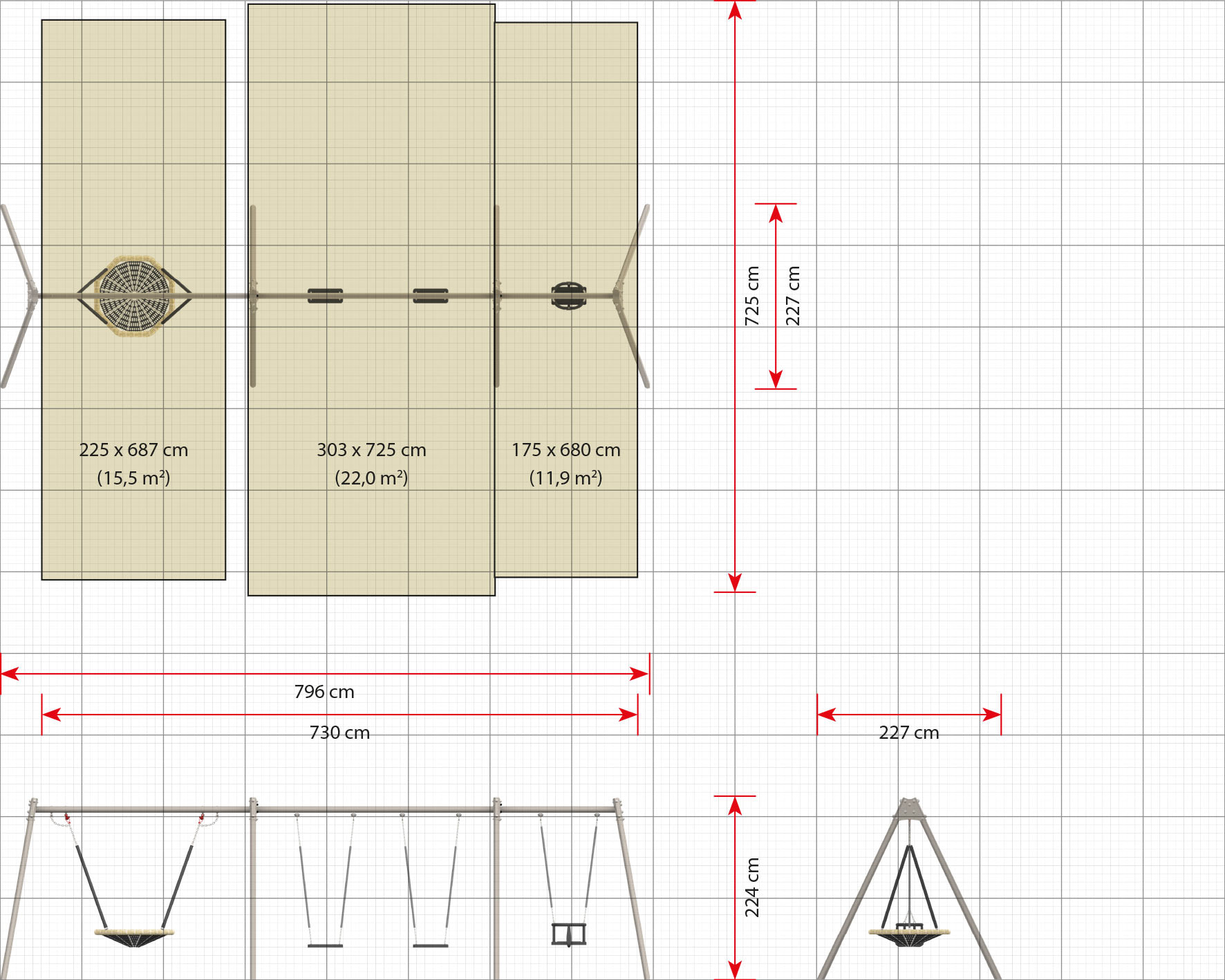 Fyrkantigt handtag i rostfritt stål för gungbrädor och lekredskap.