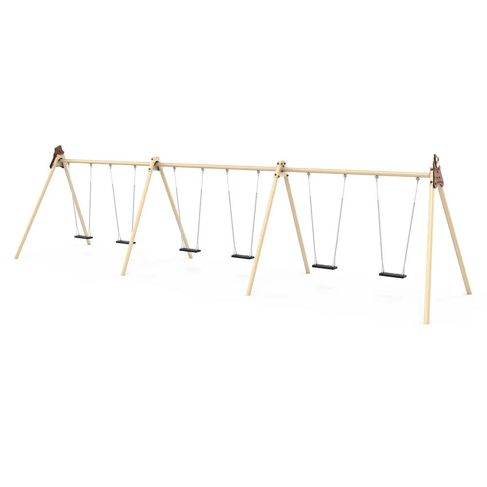 Målat modulärt gungstativ ur Explore-serien med sex säkerhetsgungsitsar. Utformat för trygg lek, balansutveckling och hög användarkapacitet.