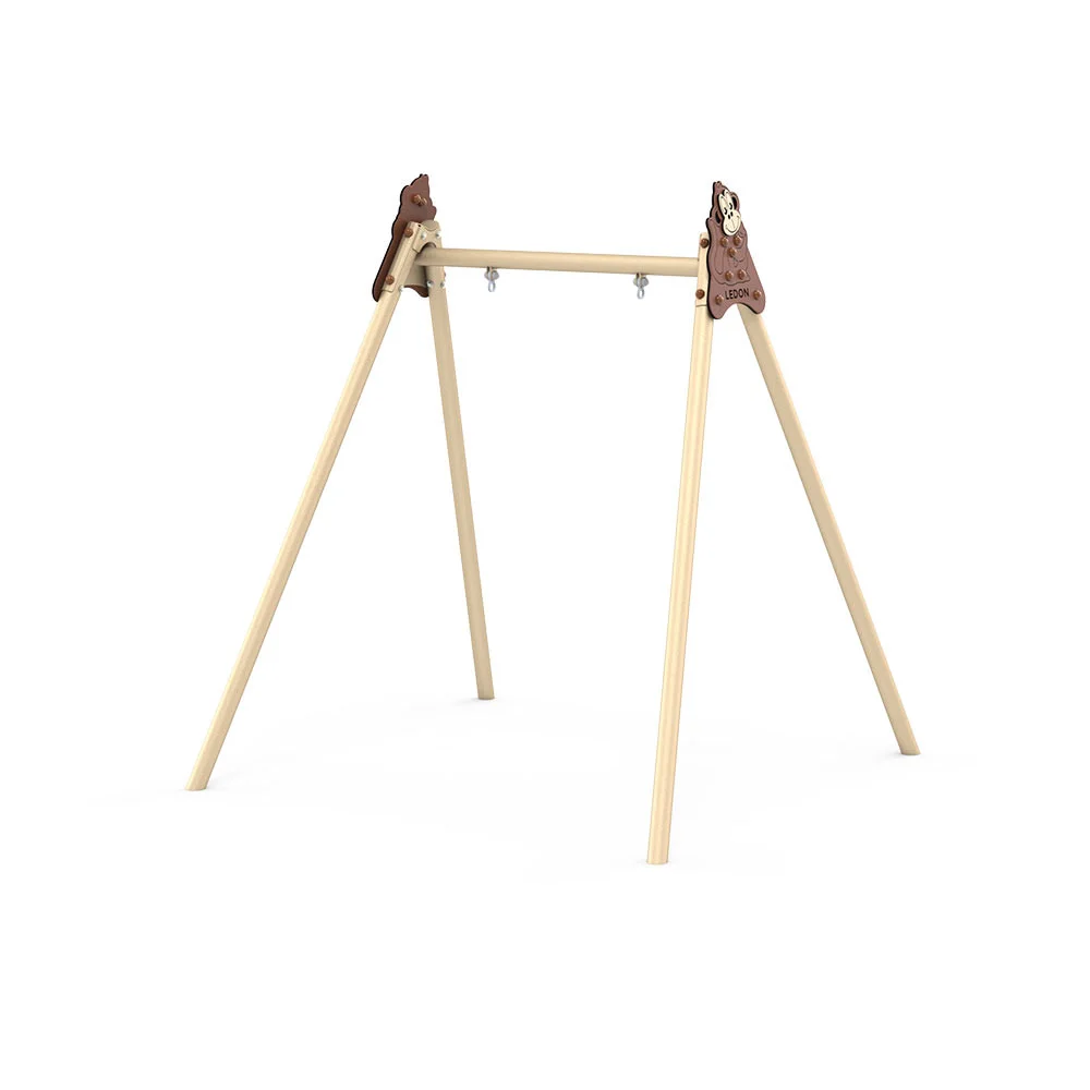 Målat gungstativ med dekorativt gavelformat element som stimulerar fantasi och rolllek. Utformat för att stärka barns balans, grovmotorik och kroppsmedvetenhet. Levereras utan sits.