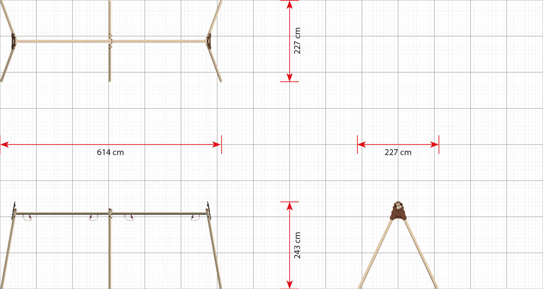 Målat gungstativ ur Explore-serien som ger plats för två fågelbogungor. Modulär konstruktion som stödjer balans, självständighet och gemensam lek. Levereras utan sitsar.