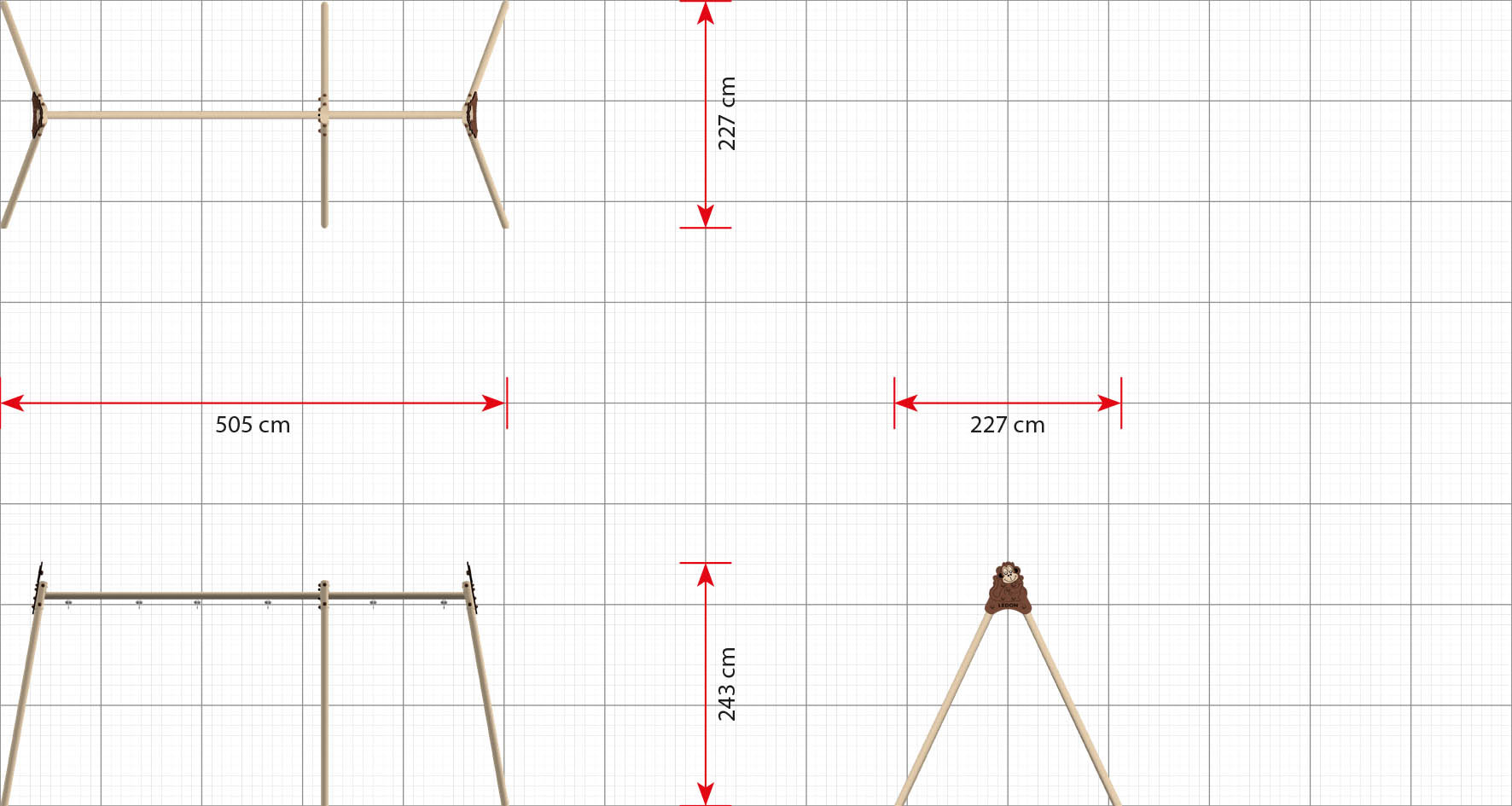 Målat gungstativ ur Explore-serien med modulär uppbyggnad. Utformat för social lek, balans och motorisk träning. Levereras utan sitsar.