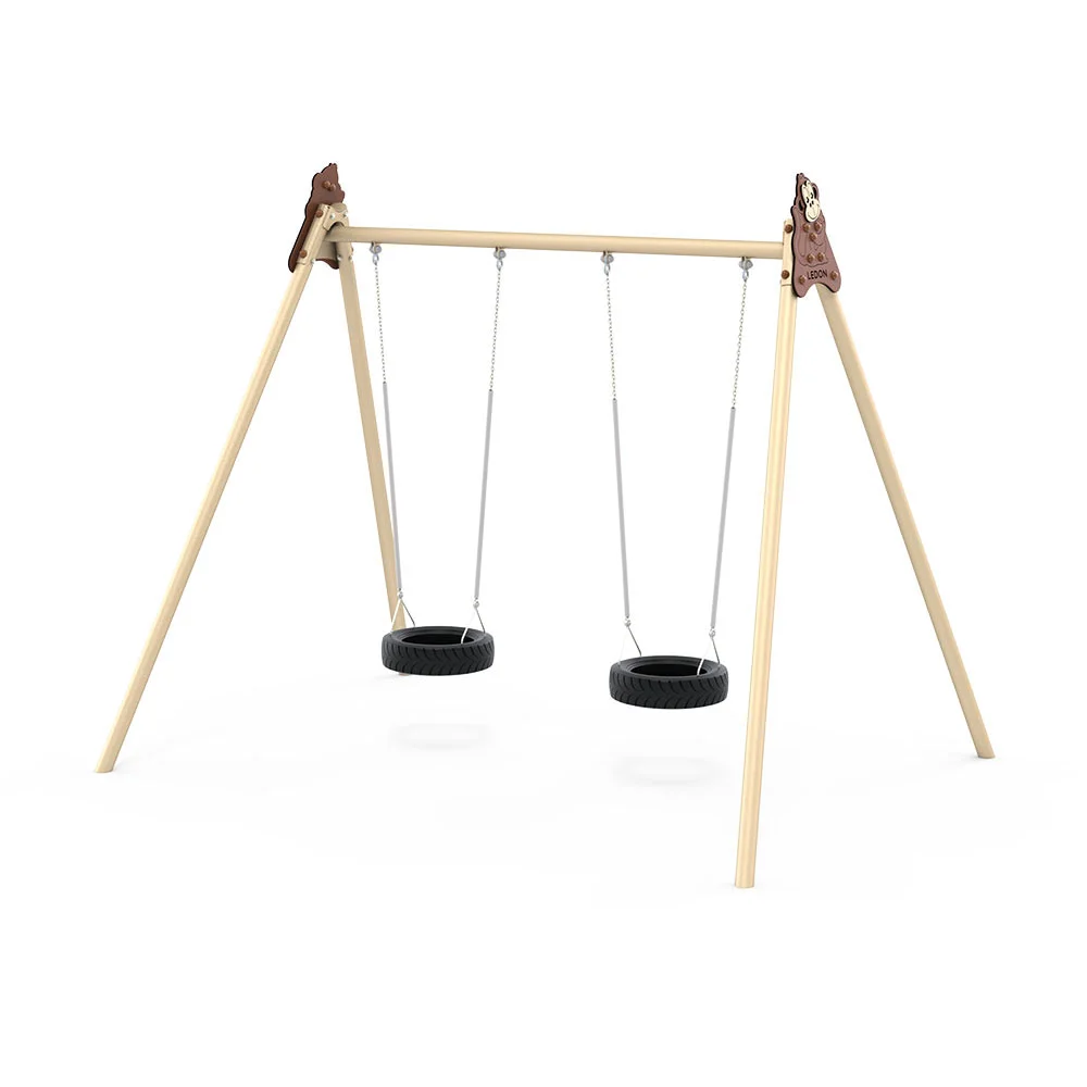 Extra högt Explore-gungstativ med två däckgungor.