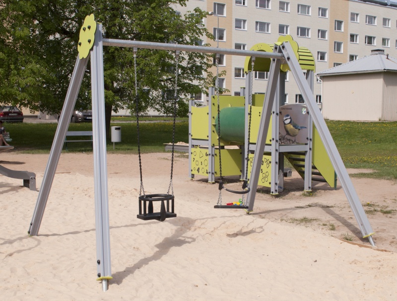 TÜV-certifierad babygunga med galvaniserade och plastbelagda kedjor samt kullagrade hängare. Kedjelängd: 1,8 meter.