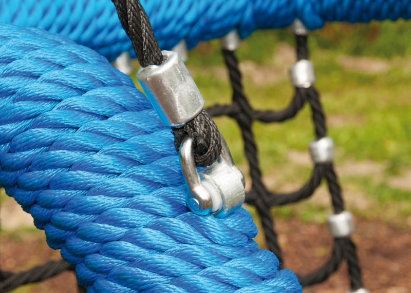 Gungsits med PP-repsäte och 16 mm stålkärna, komplett med hänglinor och rostfria kullagerfästen. Passar 1-sitsramar. Ram i D120 mm varmförzinkad metall.