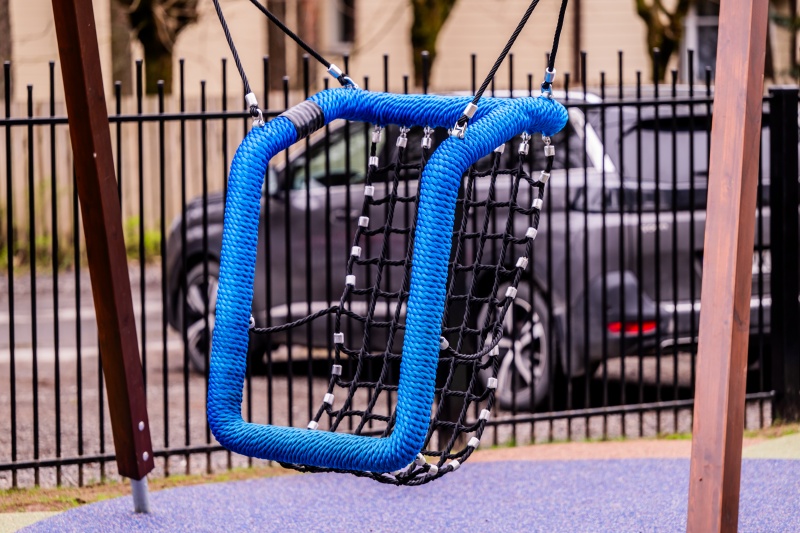 TÜV-certifierad sitsgunga med robust ram i varmförzinkad metall.