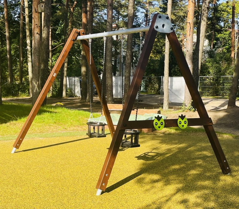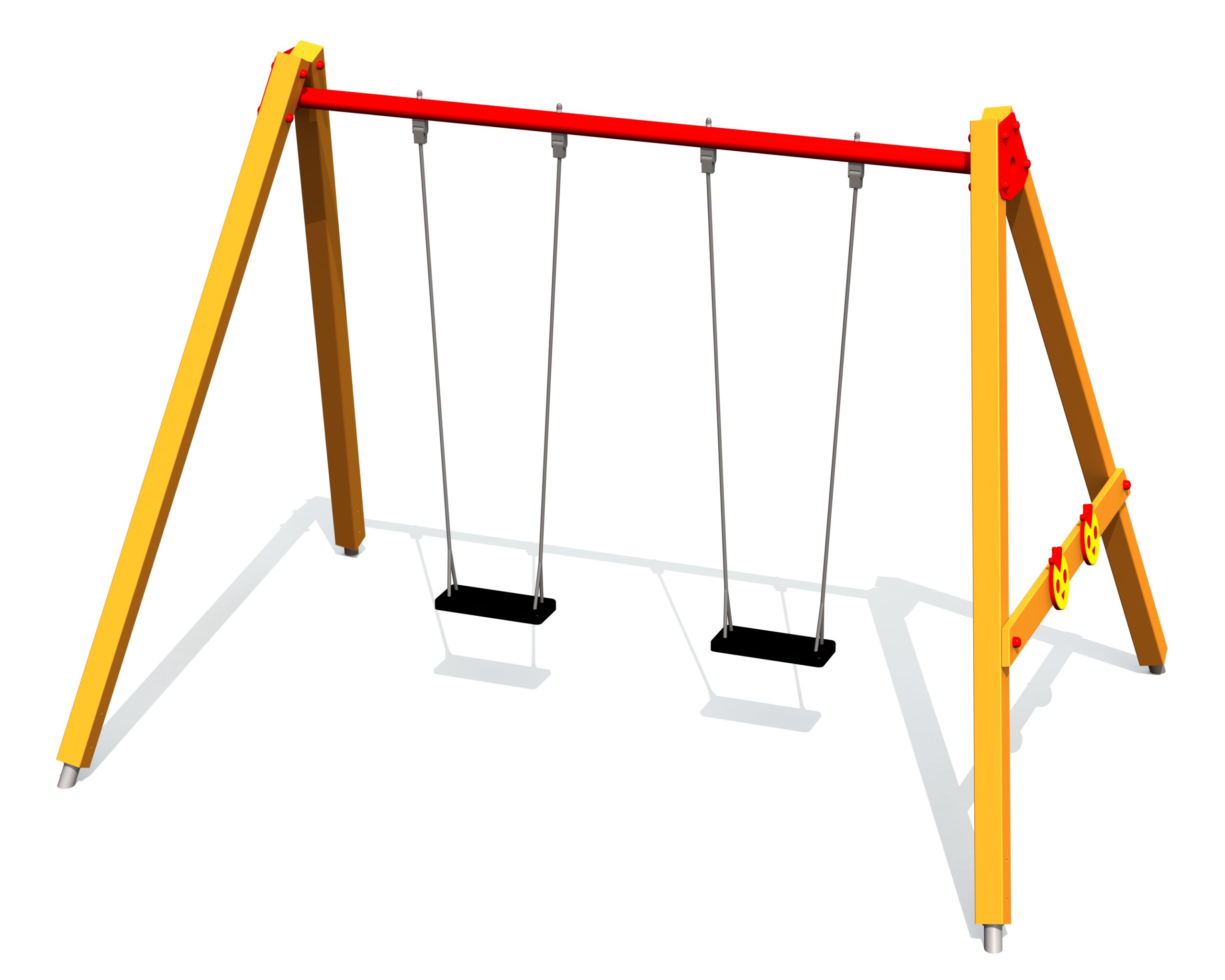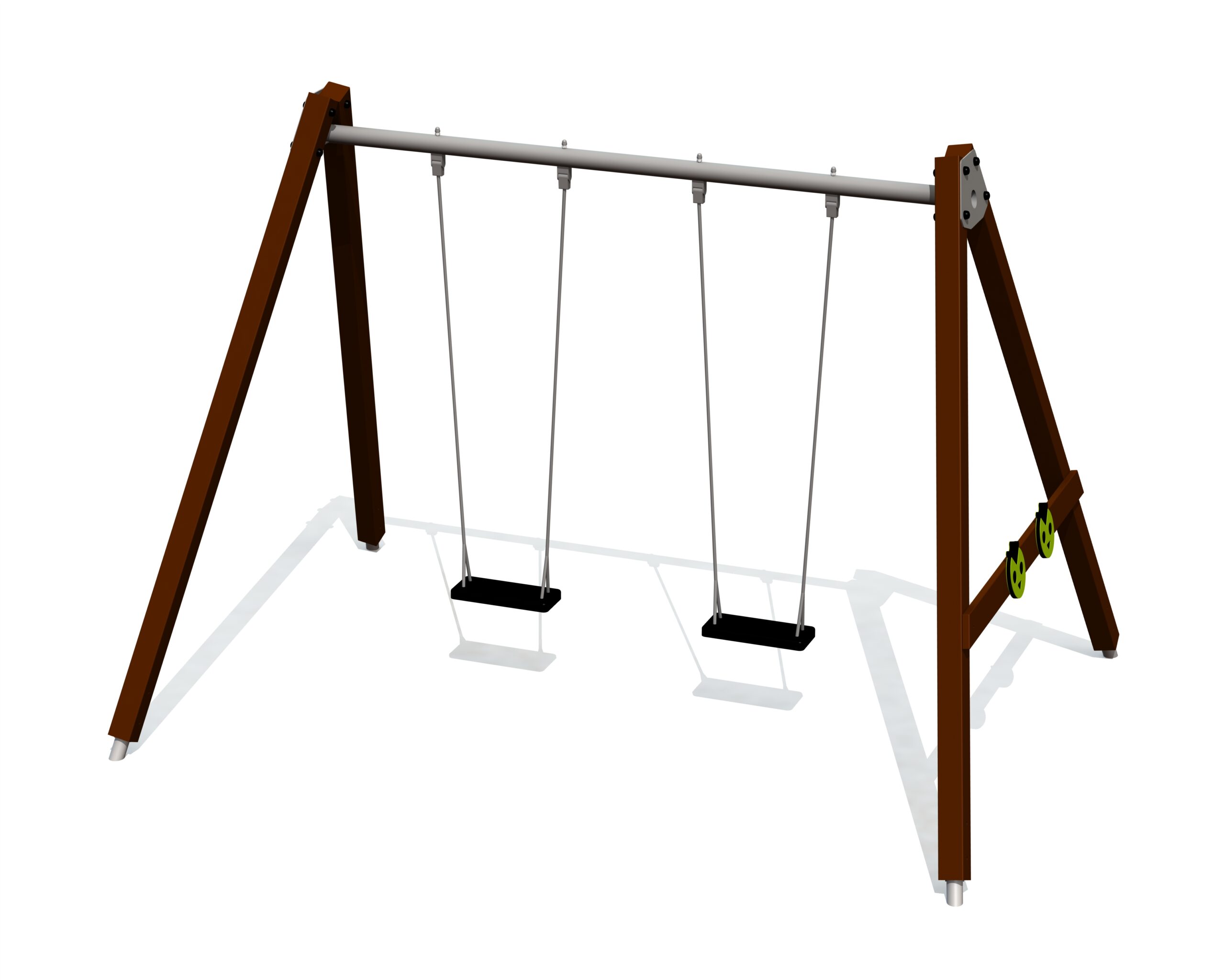 Gungställning FÅGELUNGE med två platser som kan anpassas med olika typer av sitsar, inklusive fågelbo eller däcksitsar. Balken är varmförzinkad och pulverlackerad för hög hållbarhet.