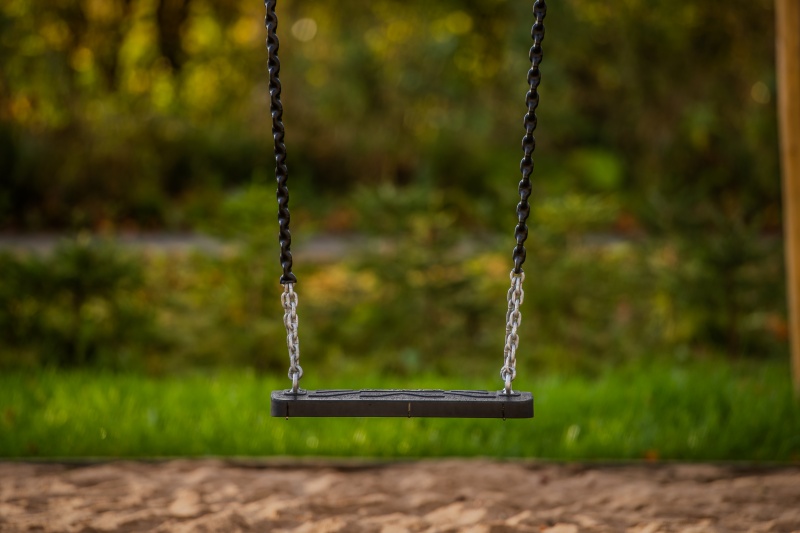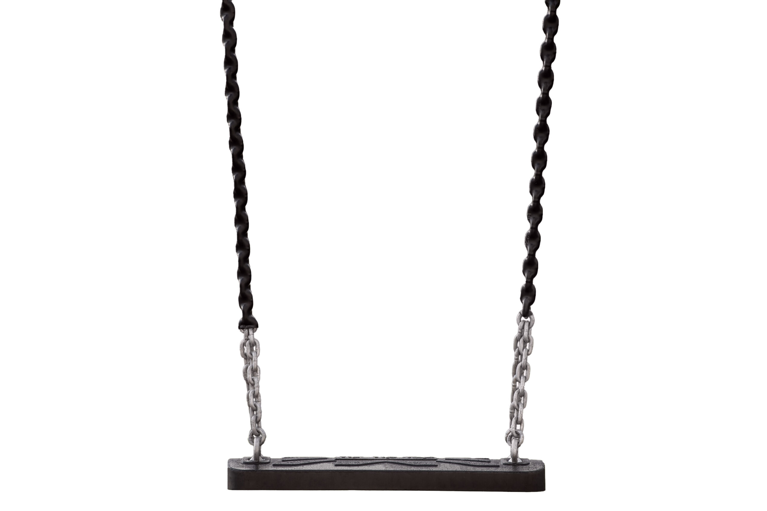 Robust gungsits i aluminium med plastbelagda kedjor.