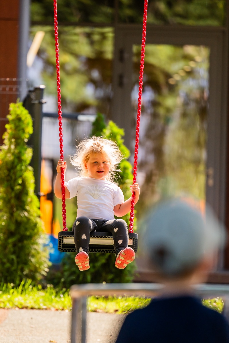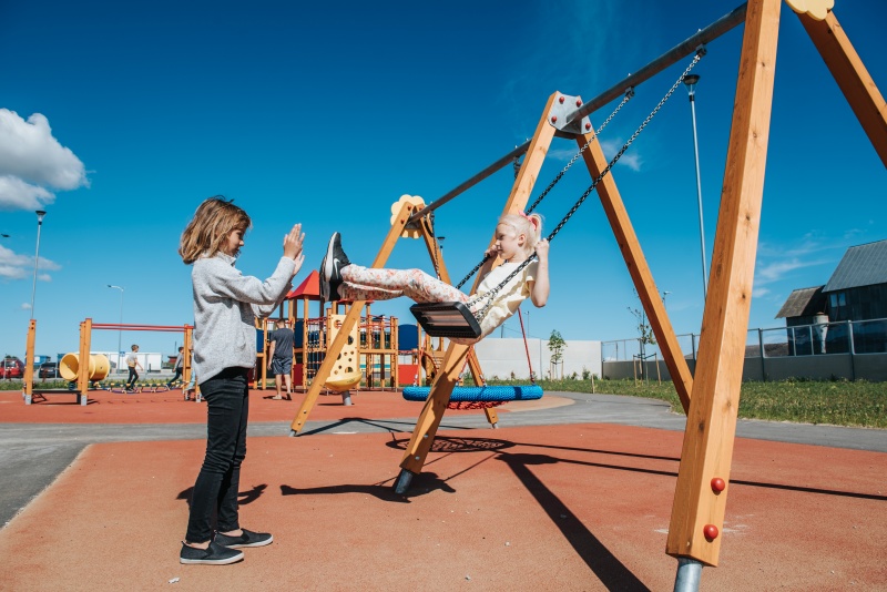 TÜV-certifierad gungsits i aluminium med väderbeständiga galvaniserade kedjor och kullager i rostfritt stål. Standardkedjelängd 1,8 meter för säker och bekväm användning.