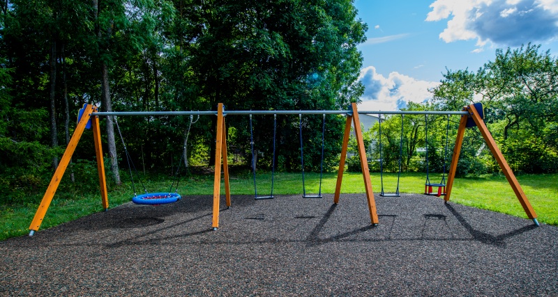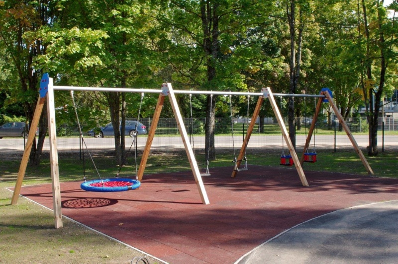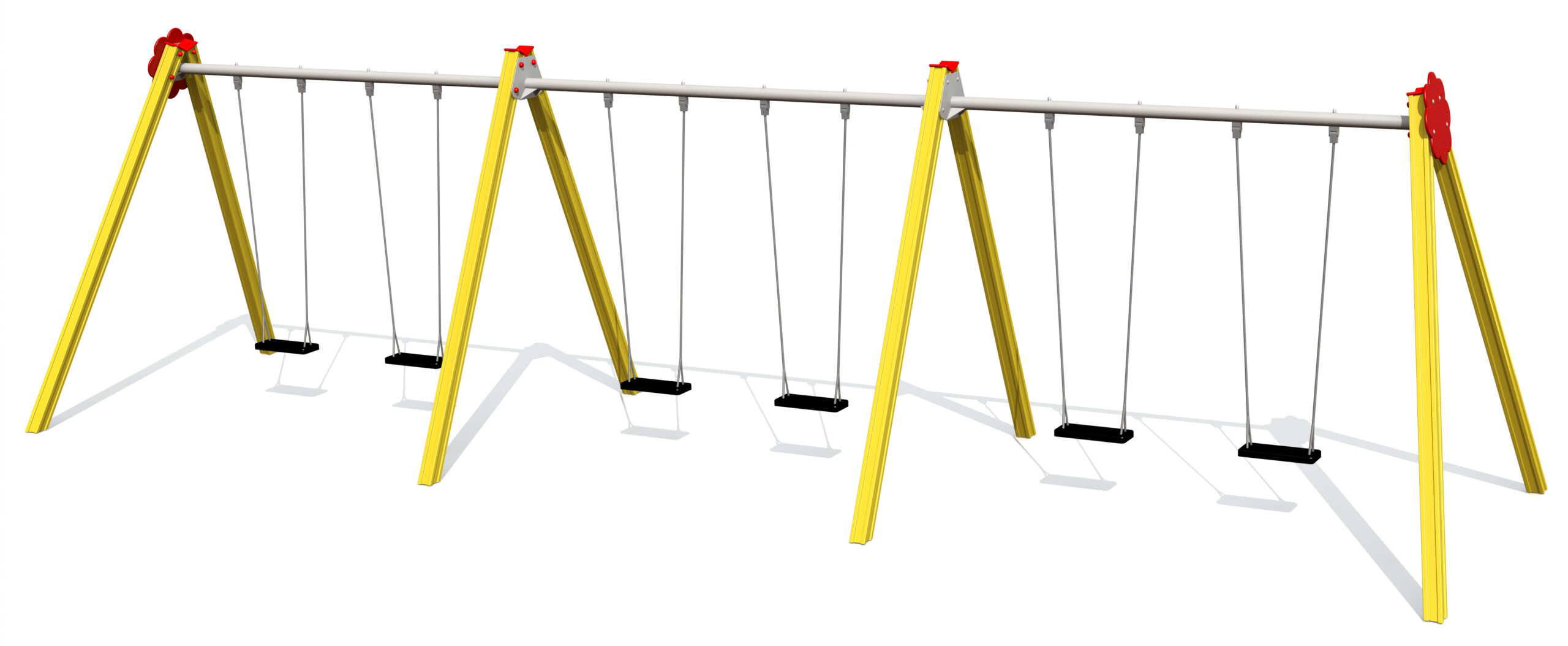 Stor fristående gungställning med sex platser för gemensam lek.