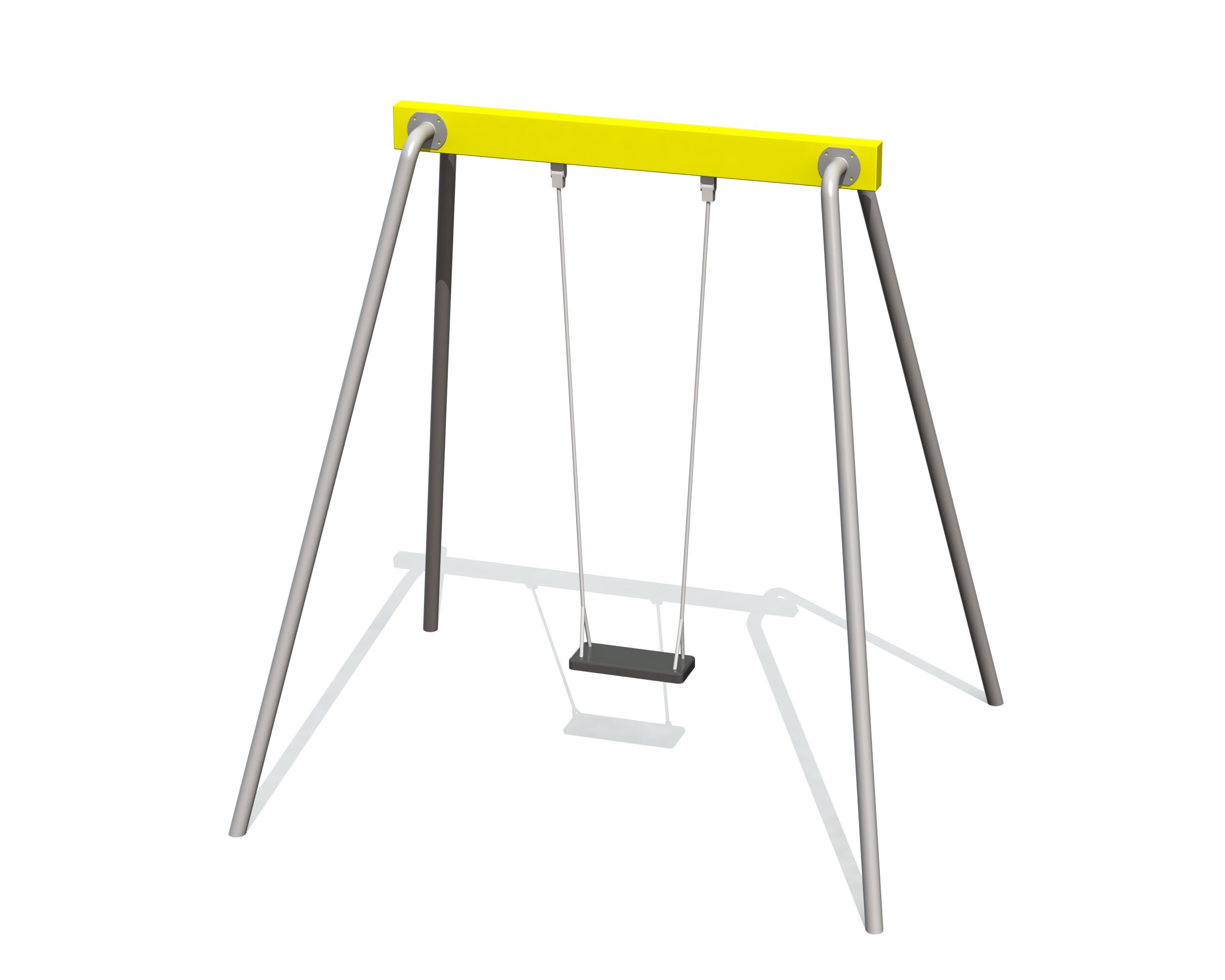 Gungställning ÖRN med en plats som kan utrustas med olika typer av gungsitsar. Balken är varmförzinkad eller pulverlackerad beroende på utförande.