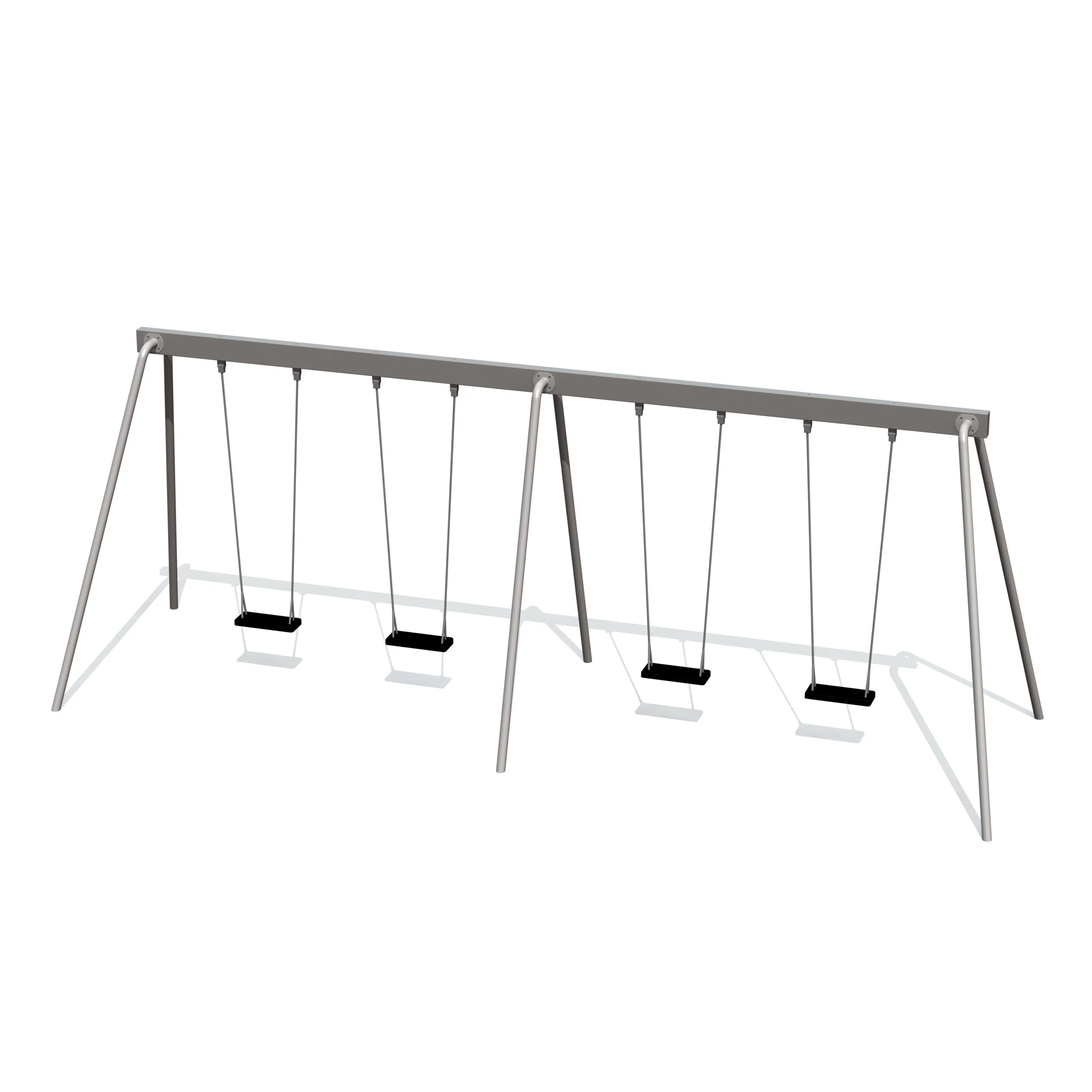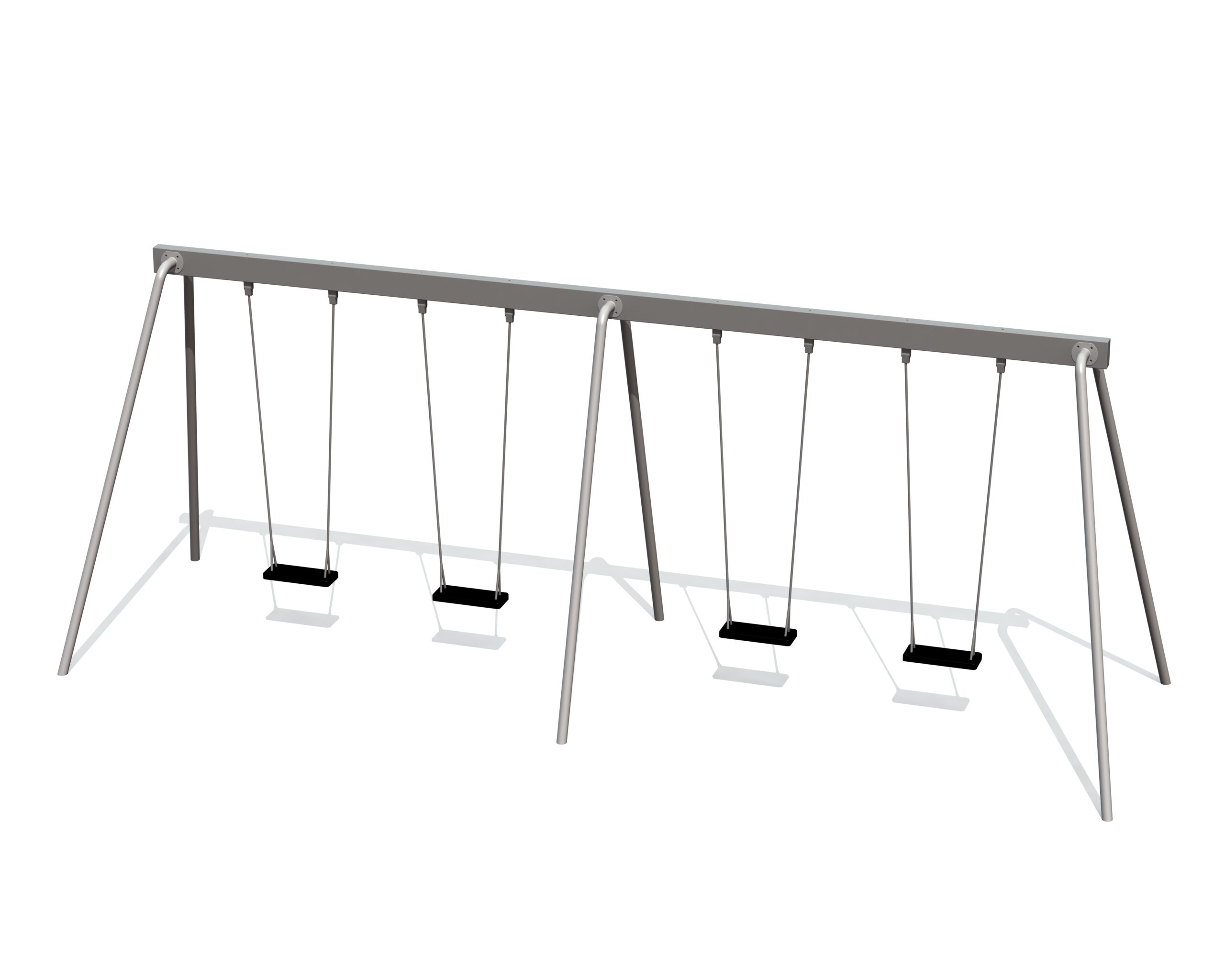 Gungställning ÖRN med fyra platser som kan utrustas med olika sitskombinationer. Stabil balk i varmförzinkat eller pulverlackerat utförande.