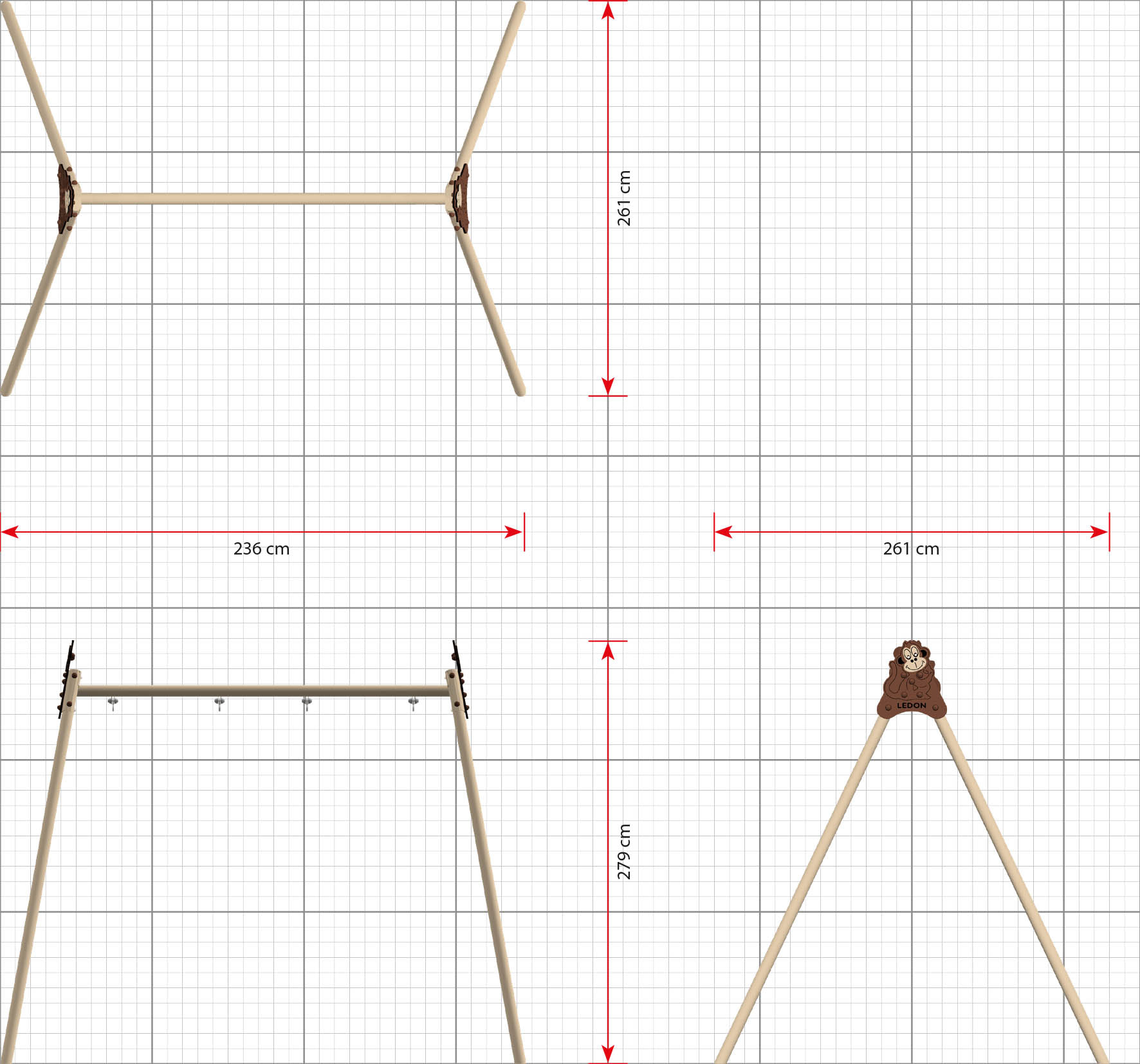 Extra högt gungstativ i Explore-serien för två gungor, anpassat för både barn och vuxna.