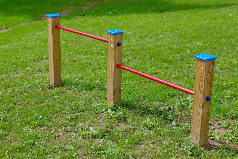 Armhävningsstänger som effektivt tränar bröst- och armmuskler. Stängerna kan även användas för benövningar såsom utfall samt för hoppövningar, vilket gör utrustningen mångsidig och lämplig för helkroppsträning i utomhusmiljö.