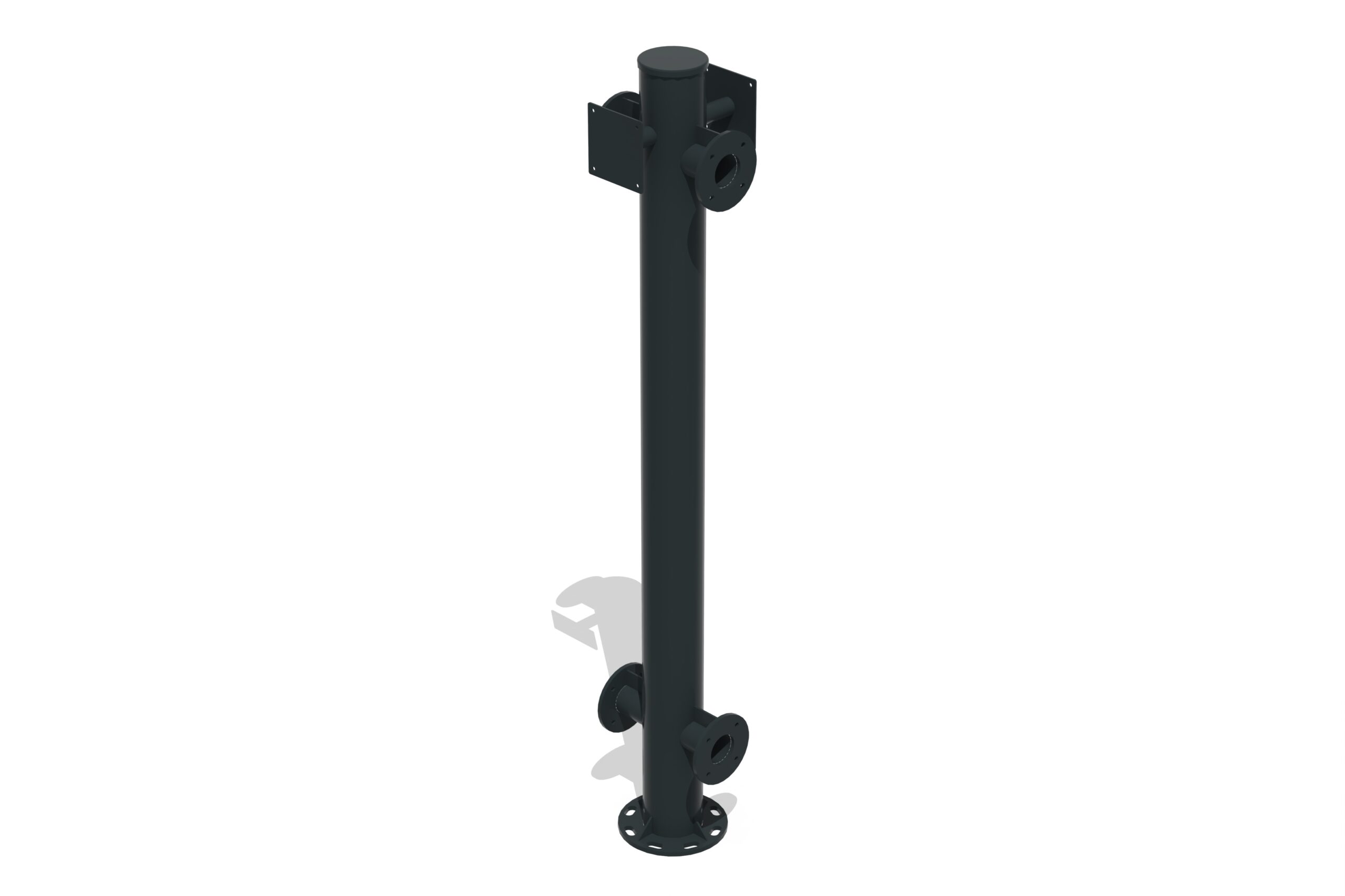 2 training devices can be fixed to the main module according to the users needs and wishes. The main module is equipped with a user manuals and a QR-codes. The main module is made of hot-dipped galvanized and powder-coated metal and is concreted into the ground.