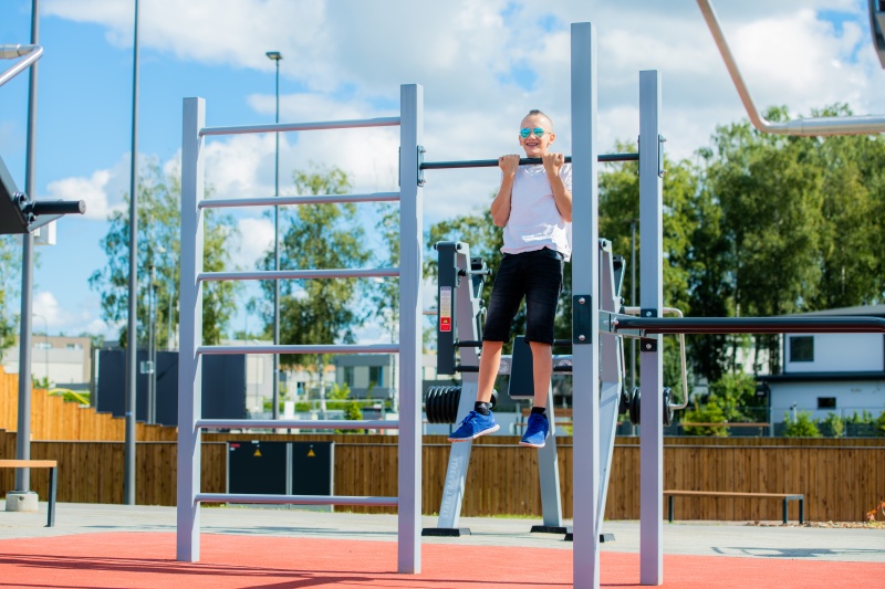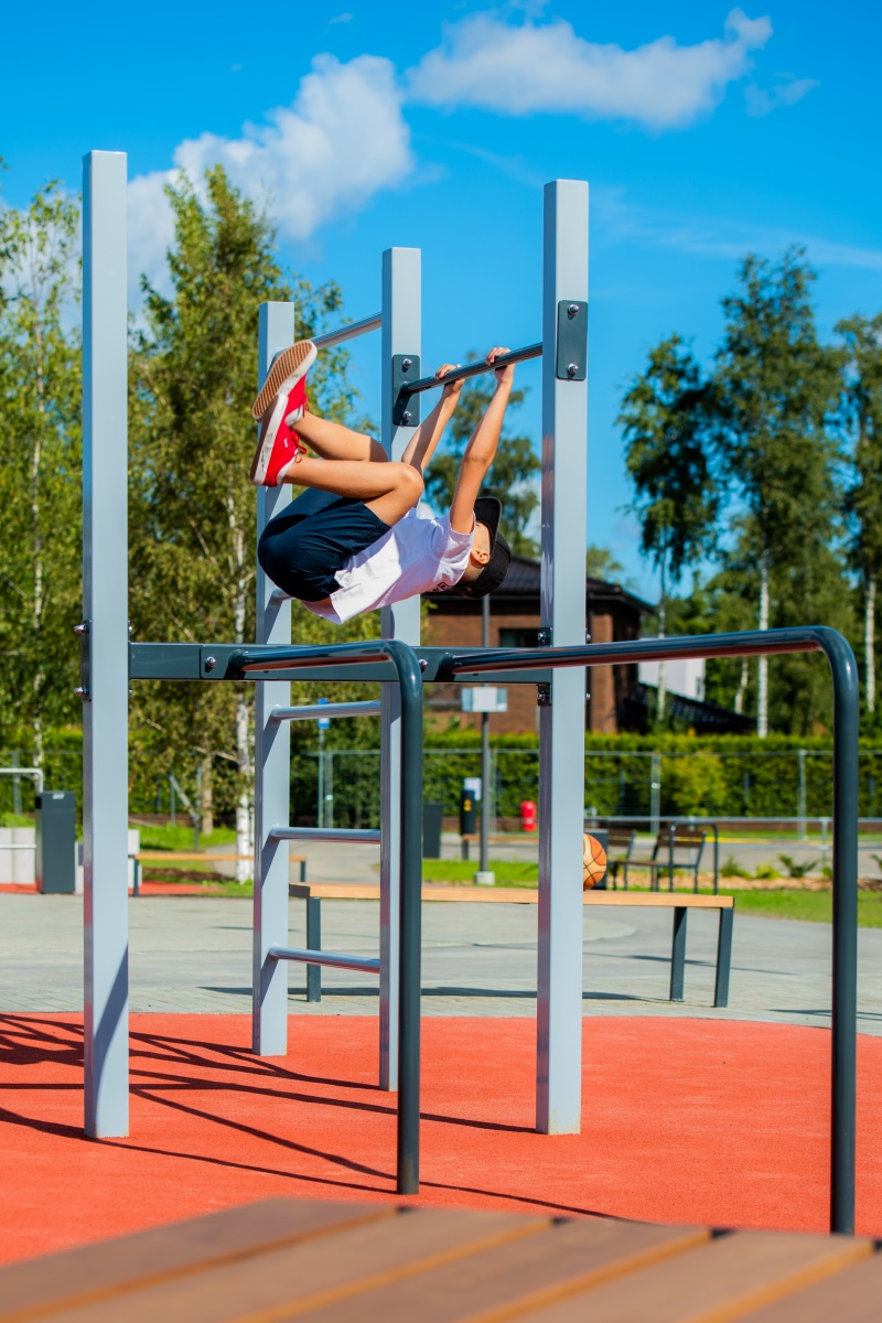 Träningsset som består av parallella stänger, trapets och vertikal stege. Konstruktionen är tillverkad av vertikala stålprofiler (80×80 mm, 5 mm godstjocklek) med bultmonterade träningsenheter. Material: pulverlackerad metall, varmförzinkning och pulverlackering på begäran. Förankras genom gjutning med möjlighet till ankarbultslösning. TÜV-certifierad enligt EN 16630:2015.