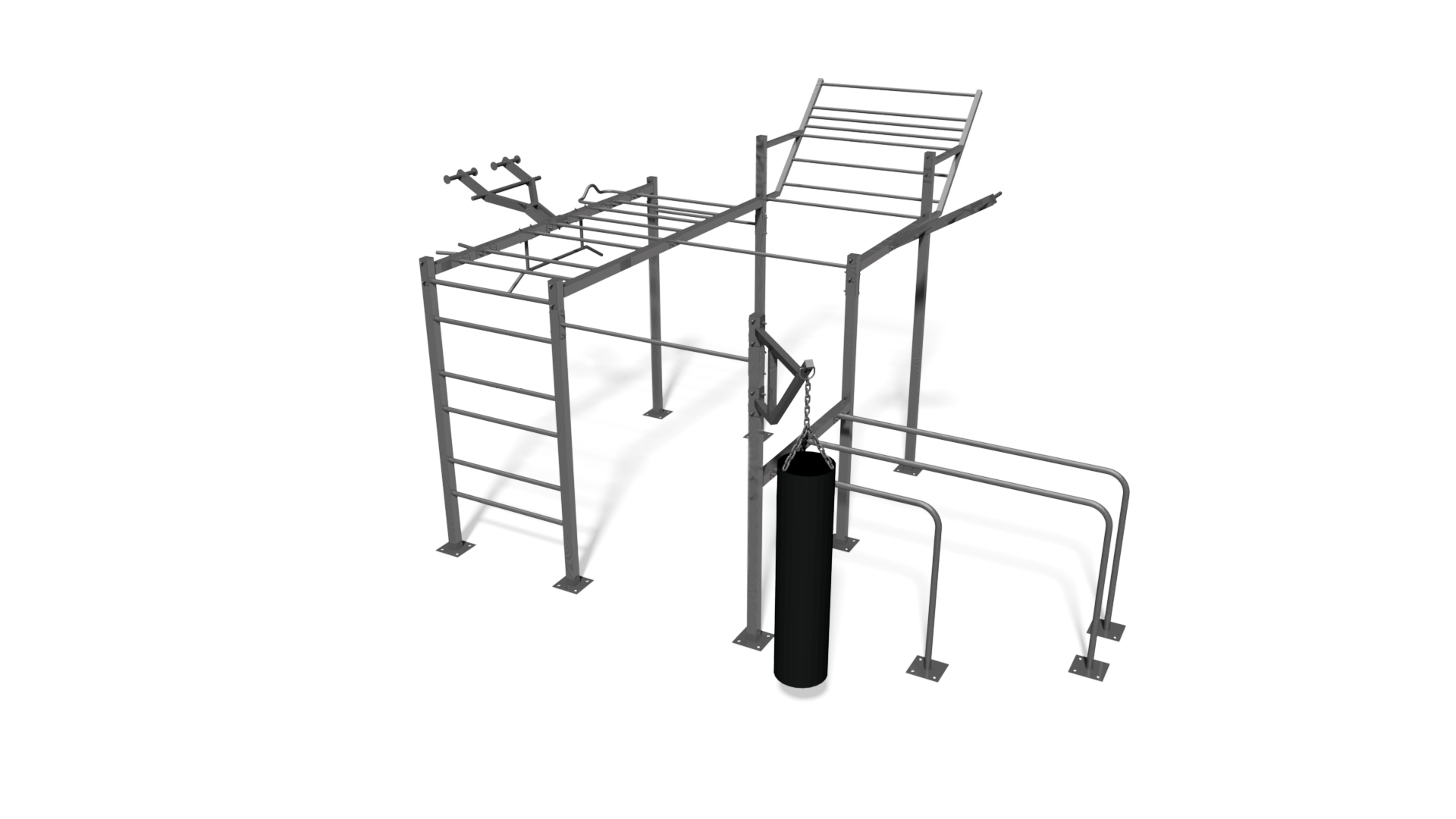Setet består av trippel parallella stänger, vertikal och horisontell stege, trapets, monkey bar samt chins- och ryggmuskelstänger i olika greppbredder och riktningar, kompletterat med boxningssäck. Konstruktionen är tillverkad av vertikala stålprofiler (80×80 mm, 5 mm godstjocklek) med bultmonterade träningsenheter. Material: pulverlackerad metall, varmförzinkning och pulverlackering på begäran. Förankras genom gjutning med möjlighet till ankarbultslösning. TÜV-certifierad enligt EN 16630:2015.