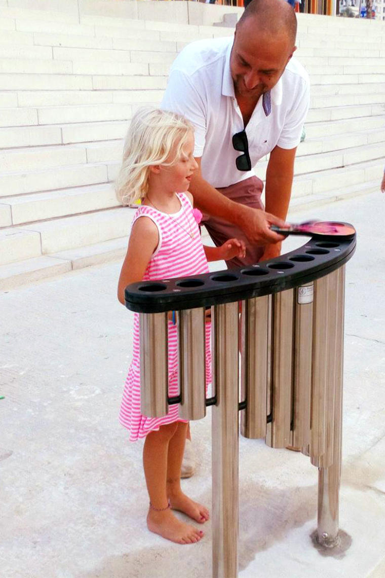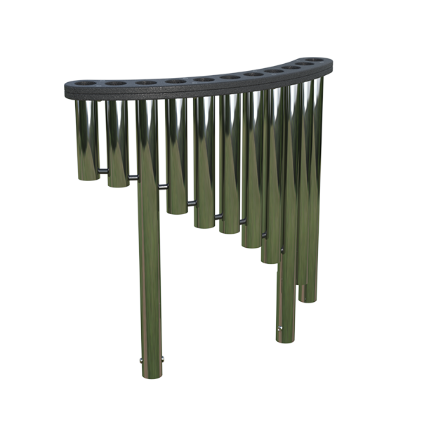 Instrumenten är tillverkade i slitstarka material för utomhusmiljöer och erbjuder ett lekfullt sätt att utforska tonhöjd, rytm och samspel för både barn och vuxna.