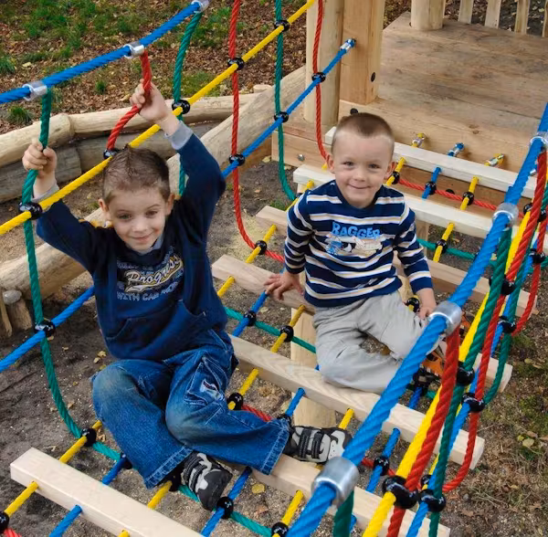 Med en total höjd på 0,8 m, en bredd på 0,75 m och maskstorlek 30 × 30 cm erbjuder hängbron lagom svaj och utmaning samtidigt som den håller en trygg nivå för barn i olika åldrar.