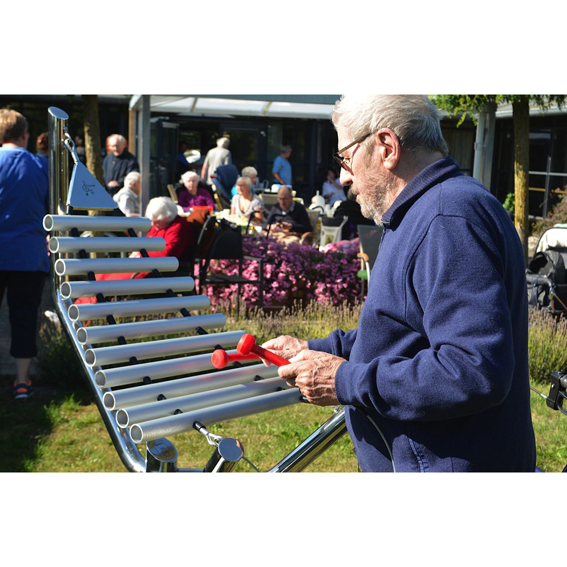 Med aluminiumrör och ram i rostfritt stål är Harmoni särskilt lämpad för inkluderande lekplatser och sensoriska trädgårdar. Instrumentet erbjuder tillgänglig design och vackra toner för alla användare.