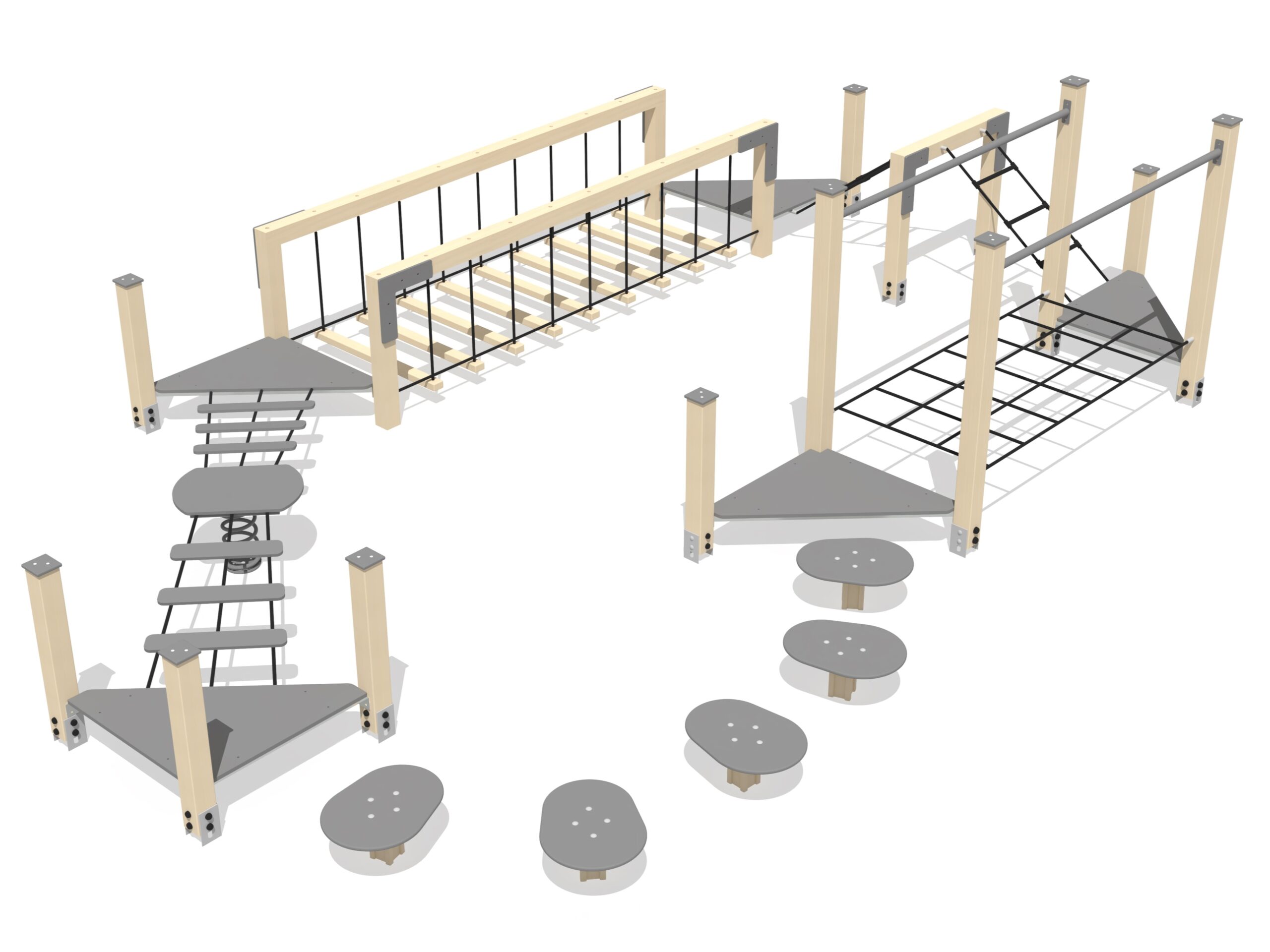 Balansspåret består av olika balans-, koordinations- och motoriska element som monteras i följd och ger en varierad och utvecklande rörelselek.