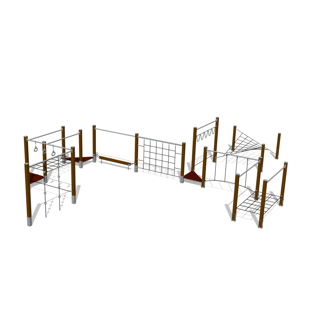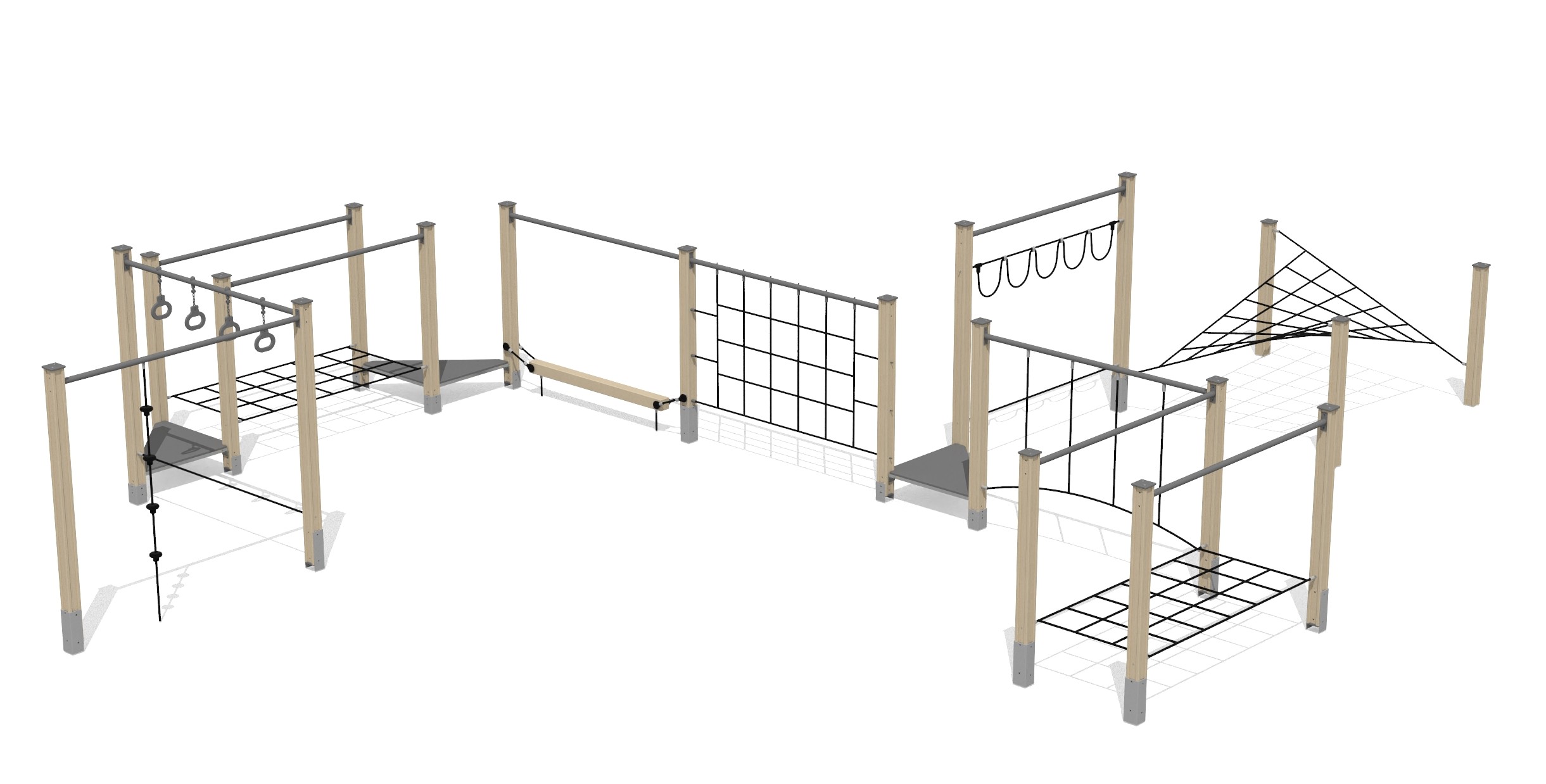 Produkten består av flera balans-, koordinations- och upphängningselement som monteras i följd. Användarna kan förflytta sig från startpunkt till slutpunkt utan att sätta fötterna i marken. Steg installeras mellan elementen.