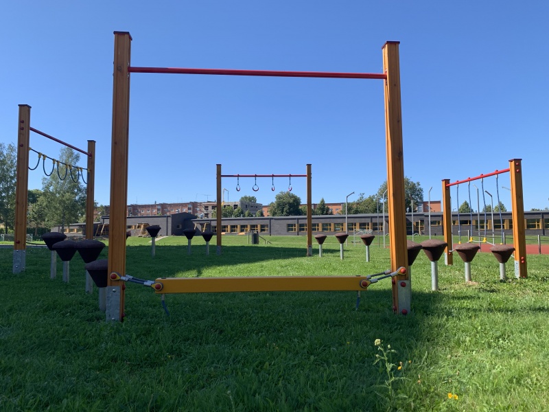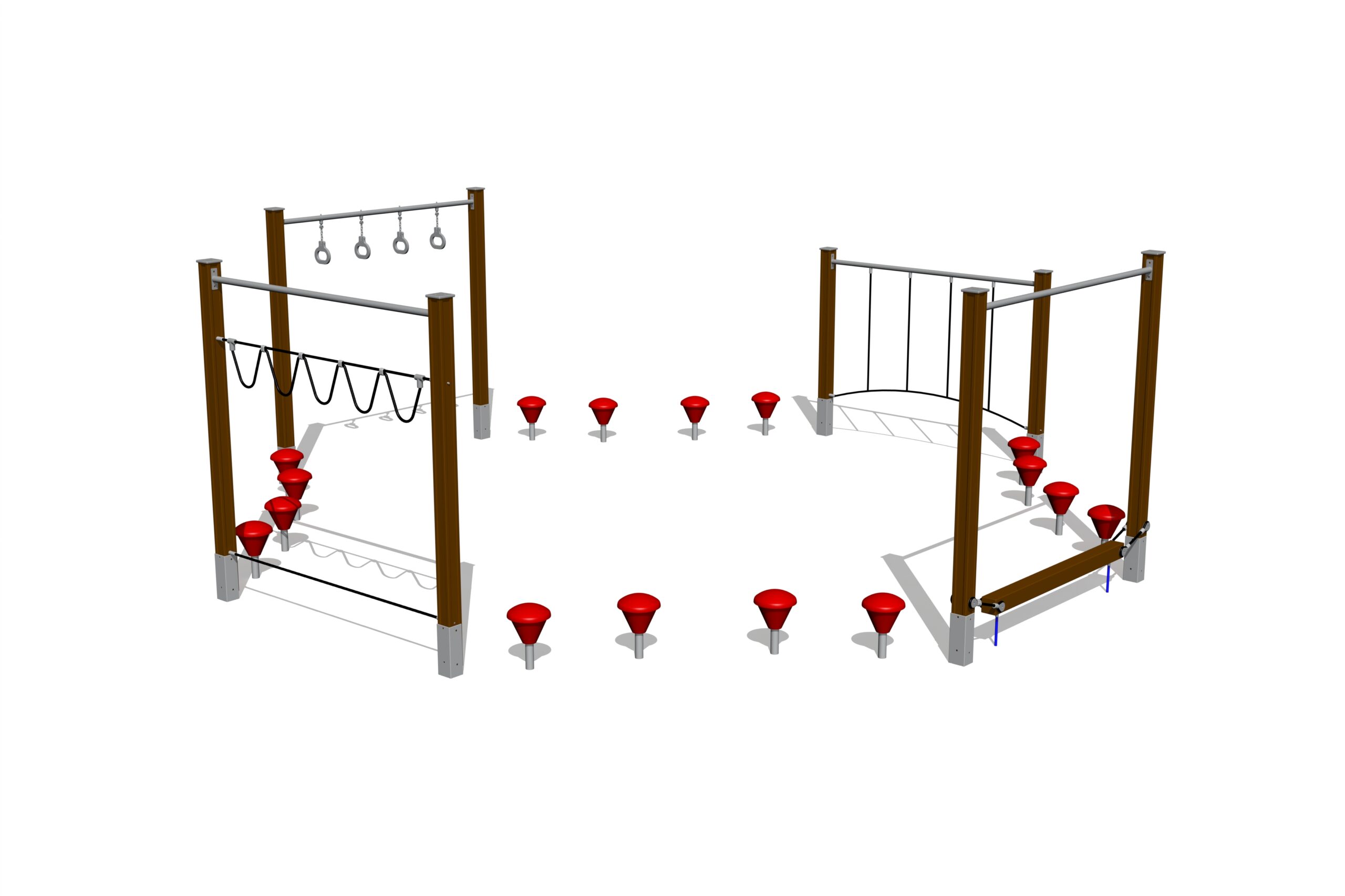 Balansspåret består av fem olika balans-, koordinations- och upphängningselement som monteras i följd. Användaren kan ta sig från startpunkt till slutpunkt utan att sätta fötterna i marken. Steg installeras mellan elementen för sammanhängande rörelse.