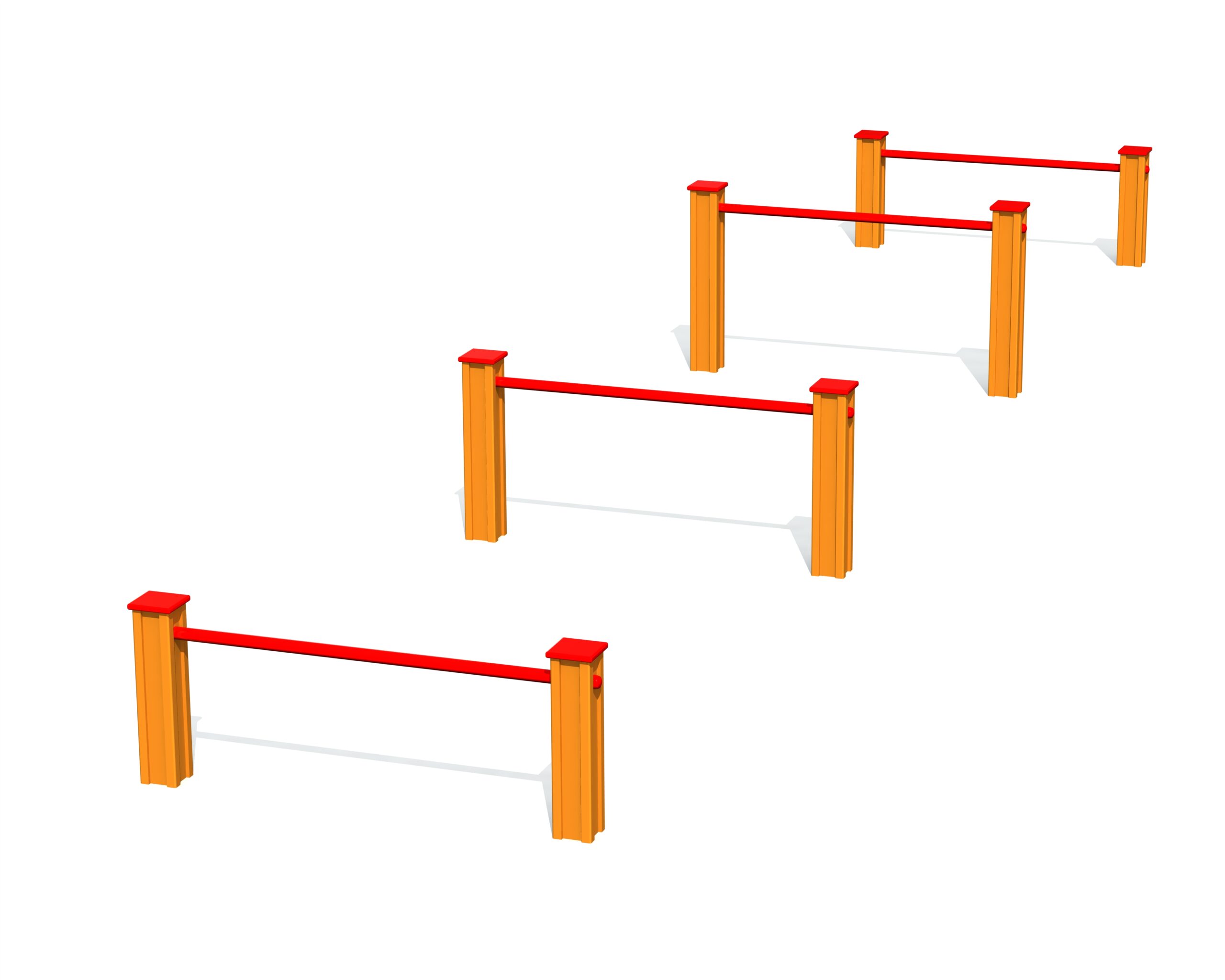 Enkel hoppbana med rör i olika höjder som tränar rörelse, koordination och kroppskontroll.
