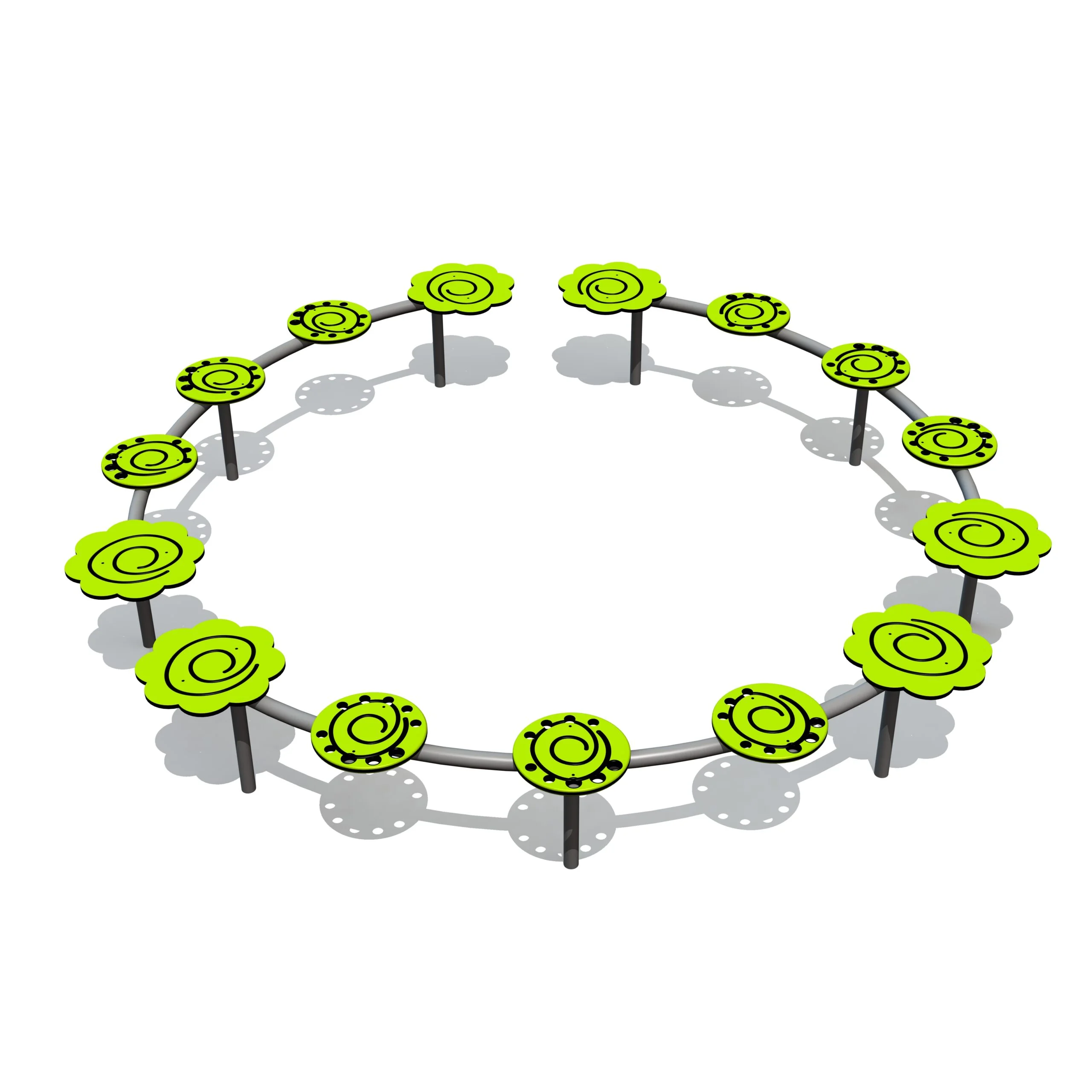 Spiralbalken med färgade skivor tränar balans och koordination. Skivorna kan även användas som sittplatser och är försedda med hål som hjälper barn att lära sig siffror.