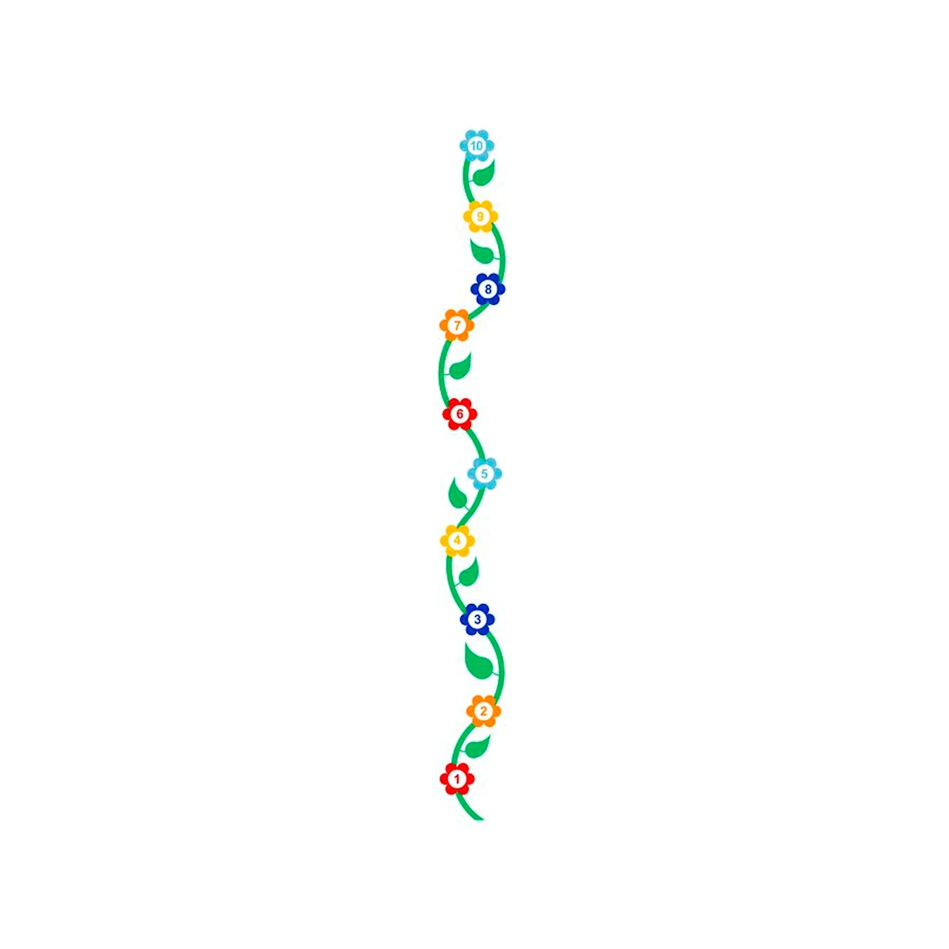 Lång hoppbana utformad som en blomstergirlang, anpassad för montering på asfalt eller betong. Skapar rörelseglädje och motorisk träning på skolgårdar och lekytor.