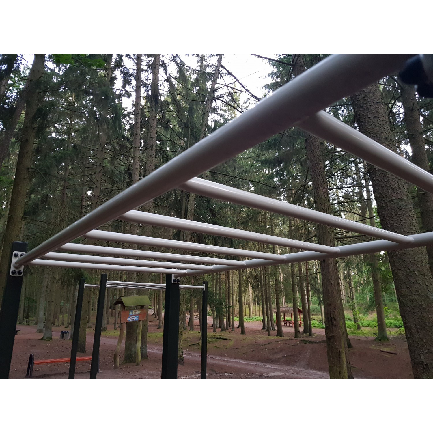 Horisontell stege upphängd på fyra stolpar med sju tvärsteg. Tränar bröst, rygg, armar, axlar och mage samt förbättrar balans och koordination.