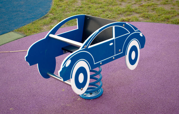 Fjädergunga i bilform som även passar yngre barn i sällskap.