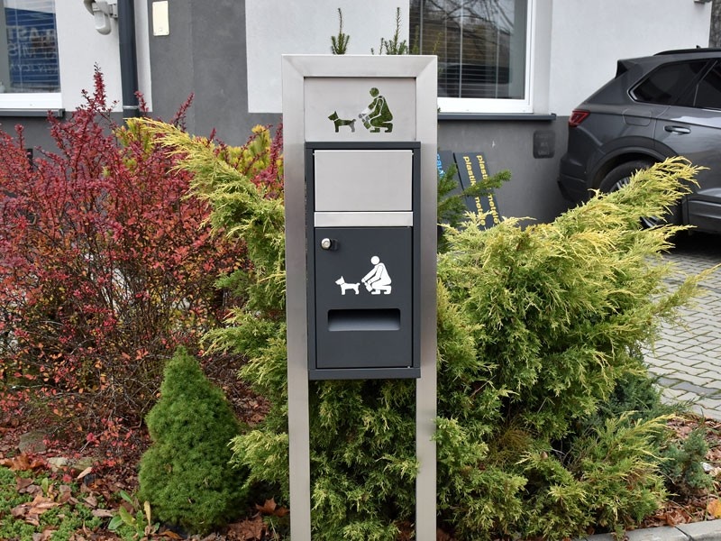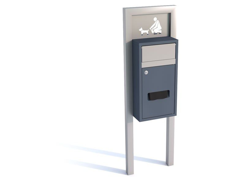 Behållare för hundavfall med inbyggd plastpåshållare.