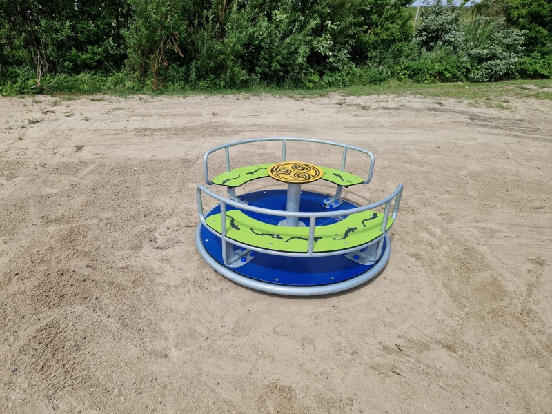 Vatteninspirerad karusell som uppmuntrar aktiv lek, samspel och fantasifulla äventyr på lekplatsen.