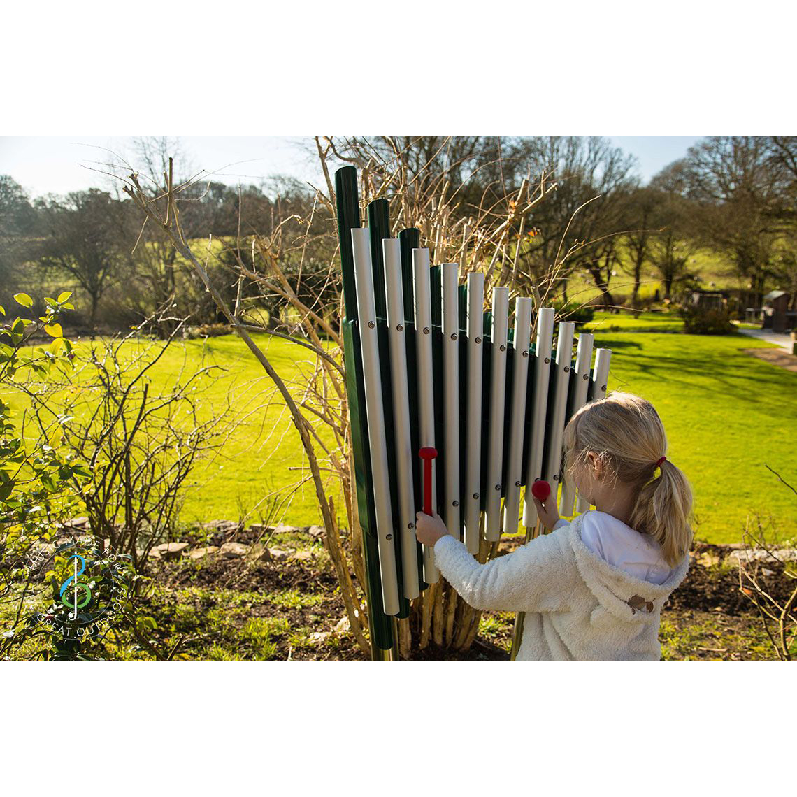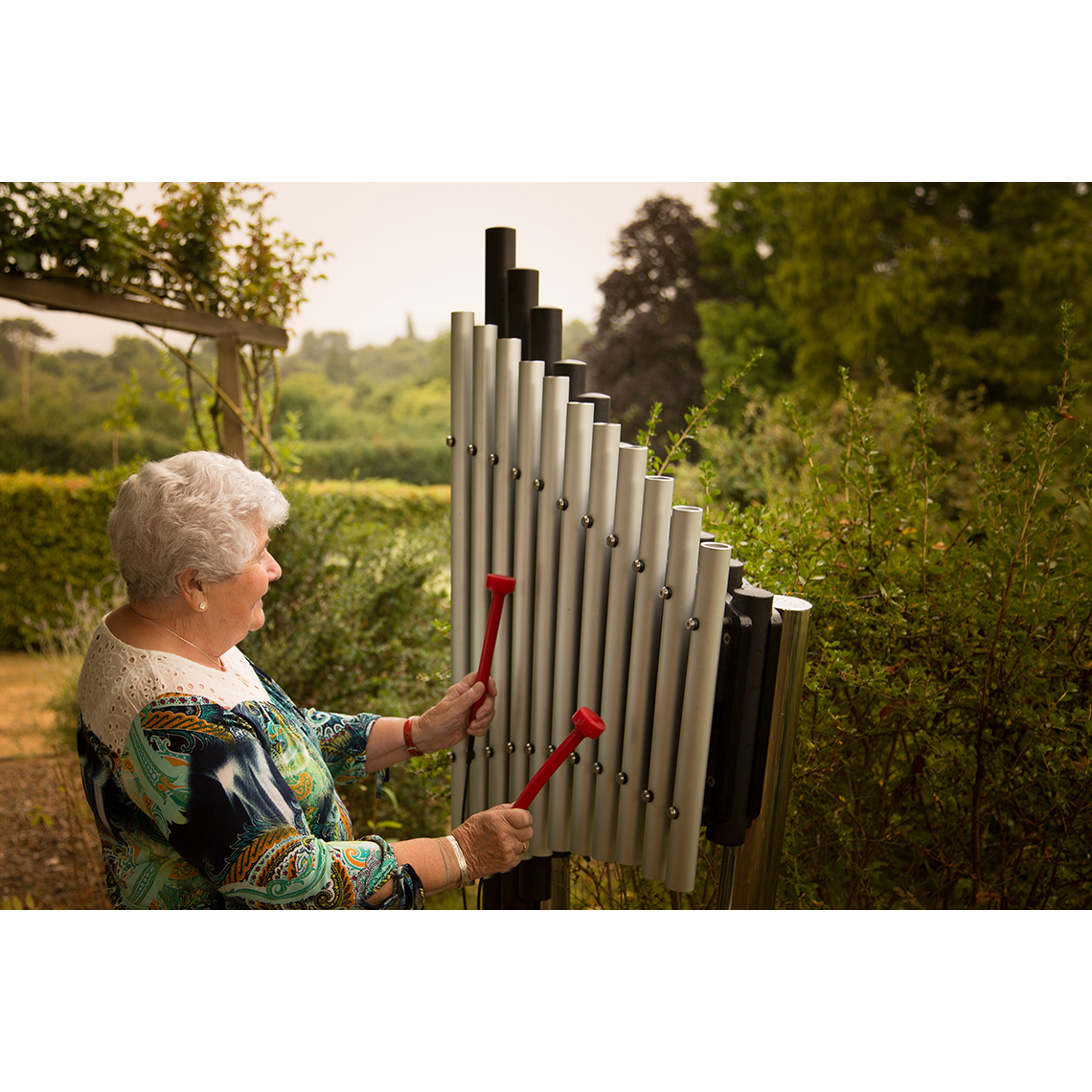 Kerub är ett lugnande och elegant utomhusinstrument som lämpar sig särskilt väl för sensoriska trädgårdar och miljöer med särskilda behov.