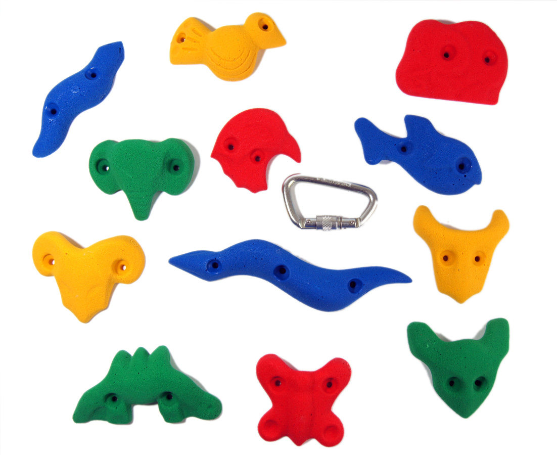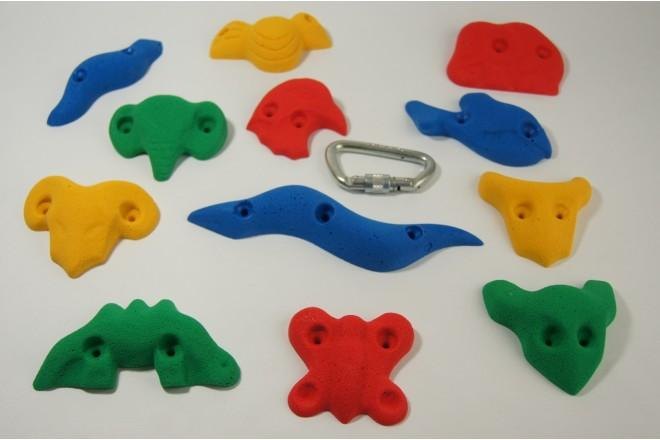 Greppsats Kids Nature är 12 st. roliga, fantasifulla och lättklättrade klättergrepp som monteras med vanlig träskruv (medföljer ej) på befintliga träväggar ute och inne. Klättringen sker horisontellt längs med marken/golvet för maximal säkerhet. Monteringsanvisning medföljer. Ett bra påbyggnadspaket.