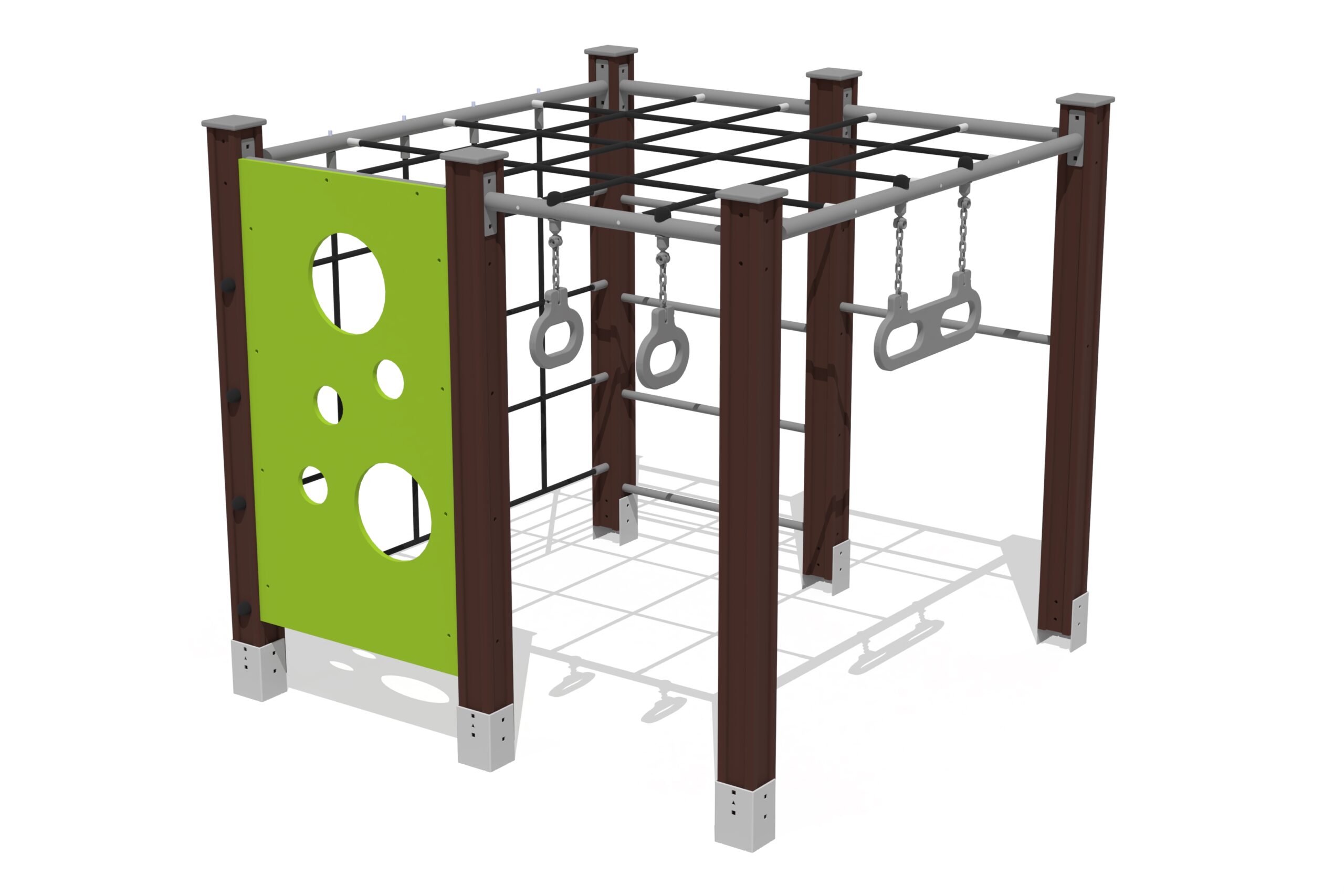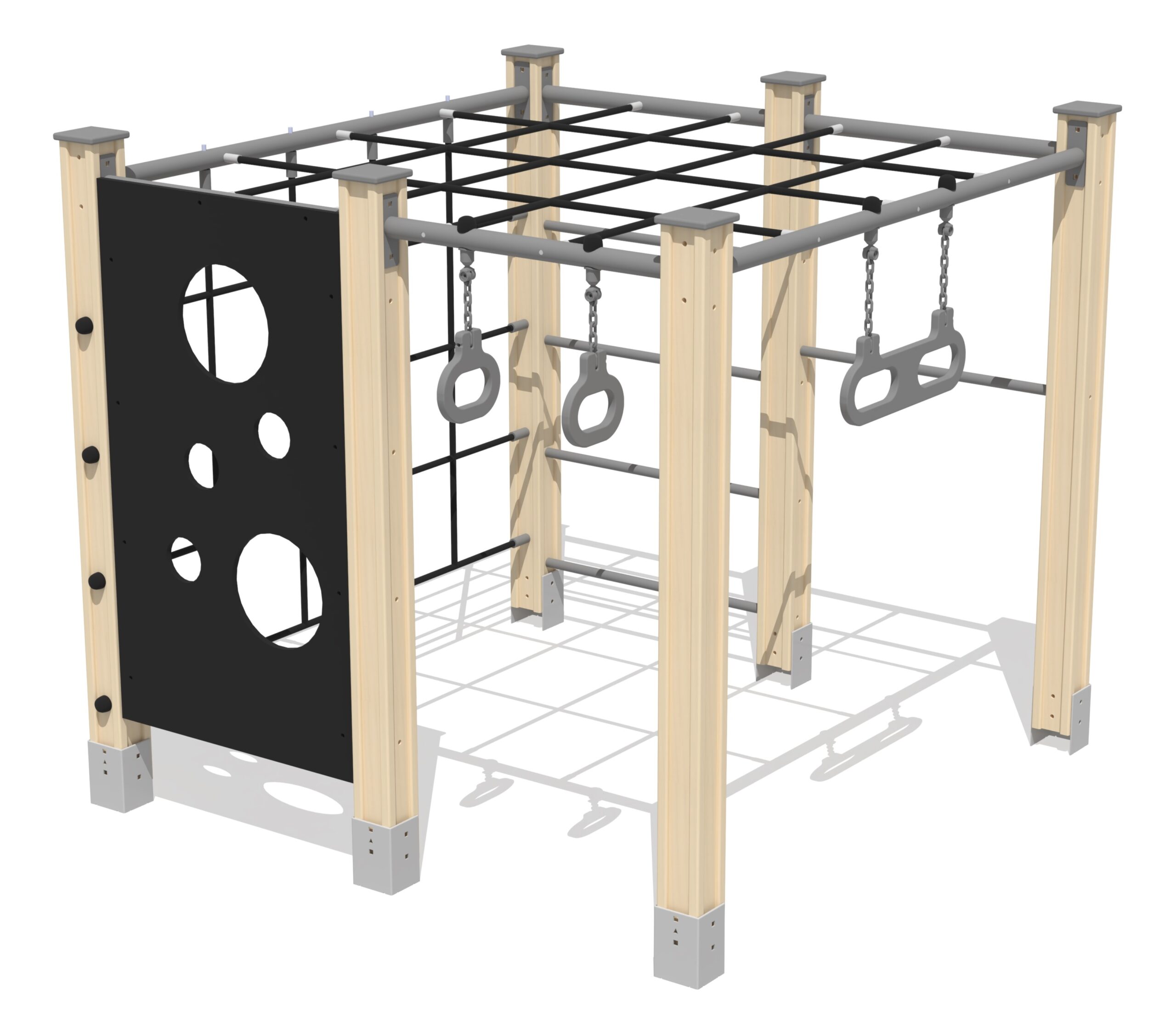 Produkten är utvecklad för lekplatser, förskolegårdar och andra offentliga utemiljöer där utrustningen behöver tåla regelbunden användning över tid. Modellen är utformad för klättring och utmaning i olika nivåer, vilket stödjer styrka, balans och koordination. Mått enligt specifikation: cirka 1,63 x 1,63 x 1,51 m. Rekommenderad ålder: 3+. En hållbar lösning för långsiktig drift och trygg användning i offentlig utemiljö.