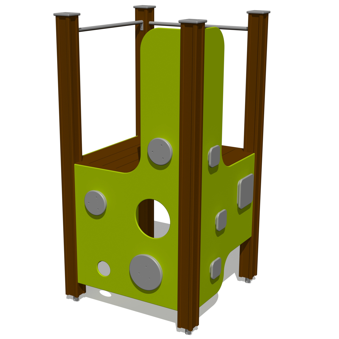 Cat är anpassad för småbarn och erbjuder en säker introduktion till klättring. Konstruktionen består av två klätterväggar, en kryppanel samt en kökshörna som passar för rolllek och exempelvis lerpajtillverkning.