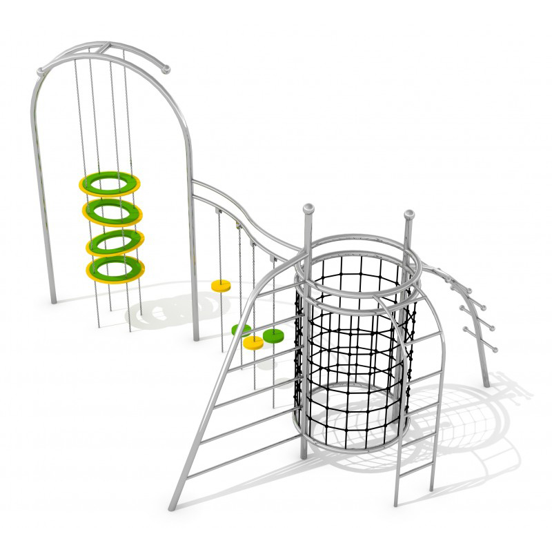 Klätterställning med formspråk inspirerat av snigelns former och livfulla färger. Konstruktion och rutschdelar är tillverkade av rostfritt stål som är motståndskraftigt mot väder och intensiv användning. Stolparna avslutas med kulor som ger intryck av snigelhorn. Golvet är tillverkat av halkfri HPL som inte värms upp i sol eller fryser på vintern. Lekplatsen är avsedd för tonåringar och fungerar som träningsutrustning. Alla Limako-produkter i rostfritt stål finns även i galvaniserad och pulverlackerad version.