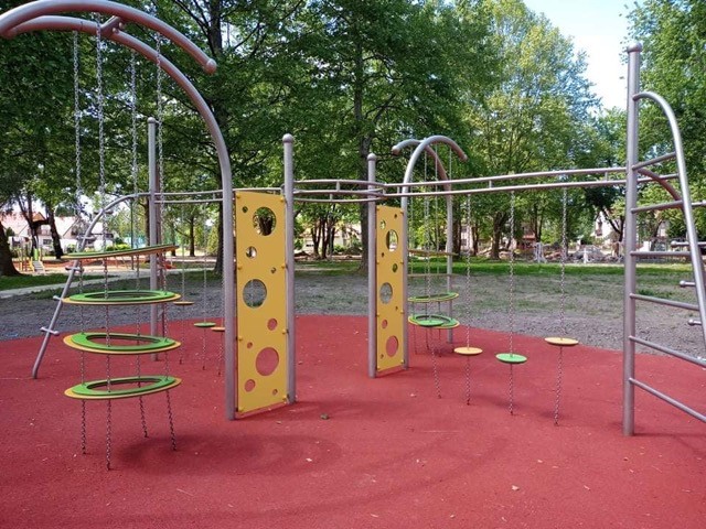 Konstruktion Gjord av stainelss stål resistant to väderförhållanden och intensive use. Wheels och climbing walls Gjord av HDPE material.