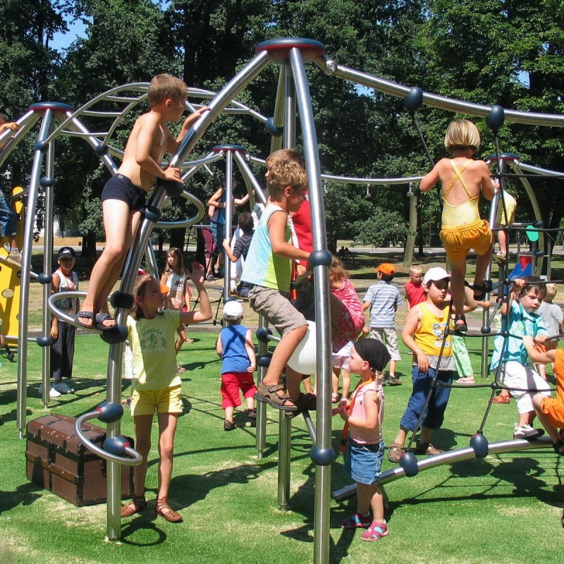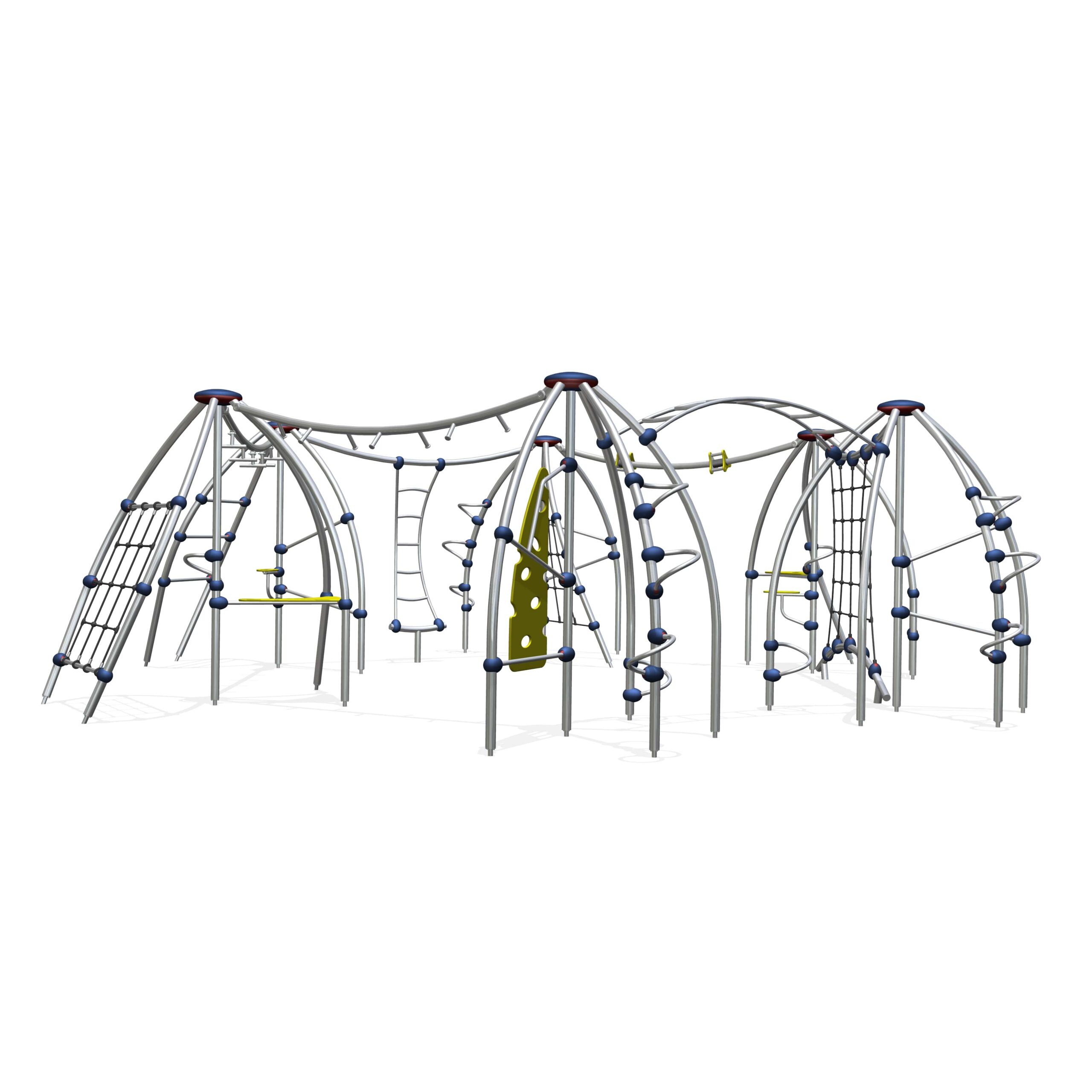 Produkten är utvecklad för lekplatser, förskolegårdar och andra offentliga utemiljöer där utrustningen behöver tåla regelbunden användning över tid. Modellen är utformad för klättring och utmaning i olika nivåer, vilket stödjer styrka, balans och koordination. Mått enligt specifikation: cirka 9,7 x 8,4 x 2,7 m. Rekommenderad ålder: 4+. En hållbar lösning för långsiktig drift och trygg användning i offentlig utemiljö.