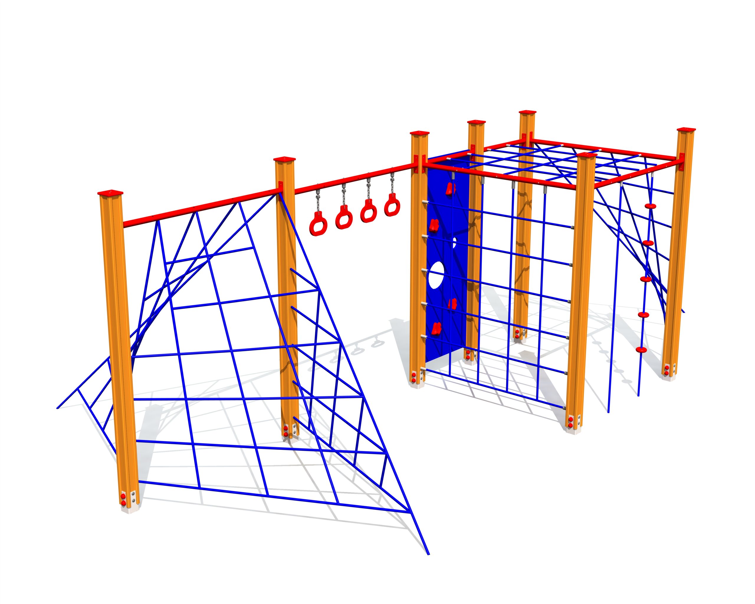 Klätterställning Gibbon S är utformad för barn med mycket rörelseenergi och ett stort intresse för klättring. Konstruktionen erbjuder diagonala och horisontella klätternät för förflyttning i flera riktningar, gymnastikringar för upphängning samt rör, väggar och rep för klättring uppåt. Kombinationen av olika klättermoment bidrar till utveckling av styrka, koordination och kroppskontroll.