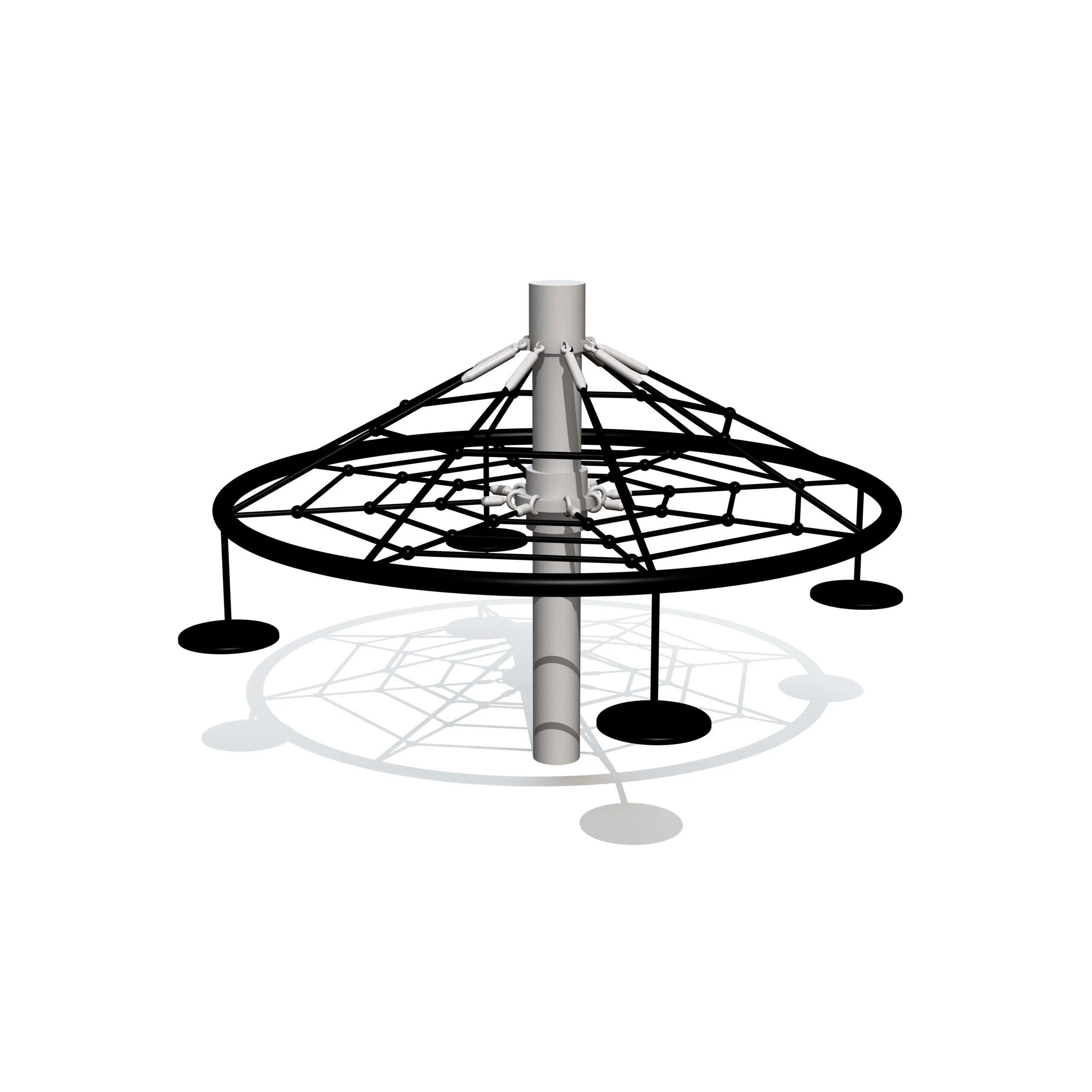 Det pyramidformade roterande klättertornet roterar både medurs och moturs och erbjuder barn möjlighet att klättra på den övre delen eller njuta av en sittande karuselltur. Tornet består av en varmförzinkad metallstolpe som betongas i marken samt en kraftig klätterkonstruktion av PP-belagda rep med 16 mm stålkärna som fästs i stolpen.