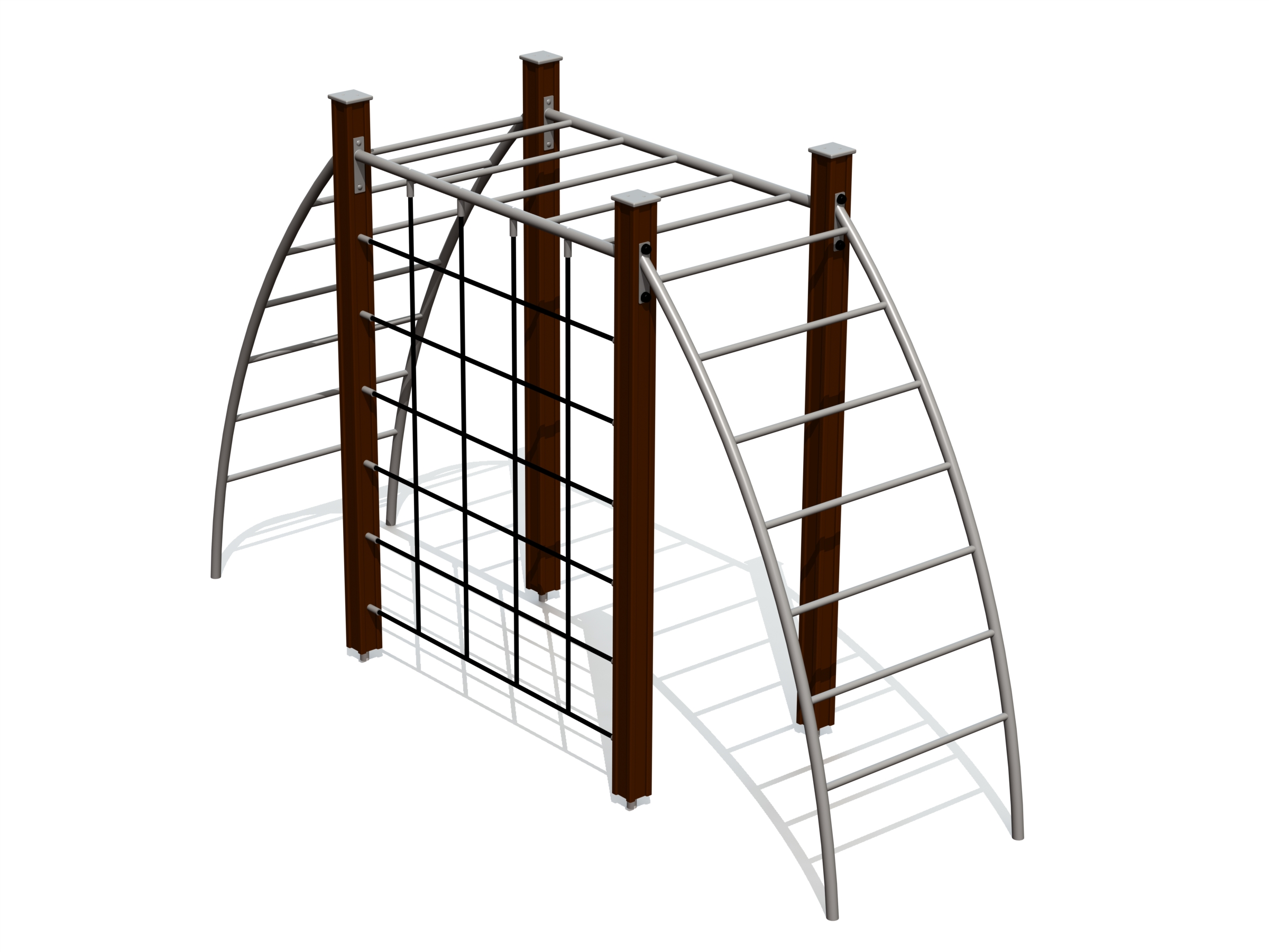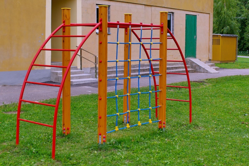 Klassisk klätterlösning med nät och stegar som möjliggör både klättring och hänglek.