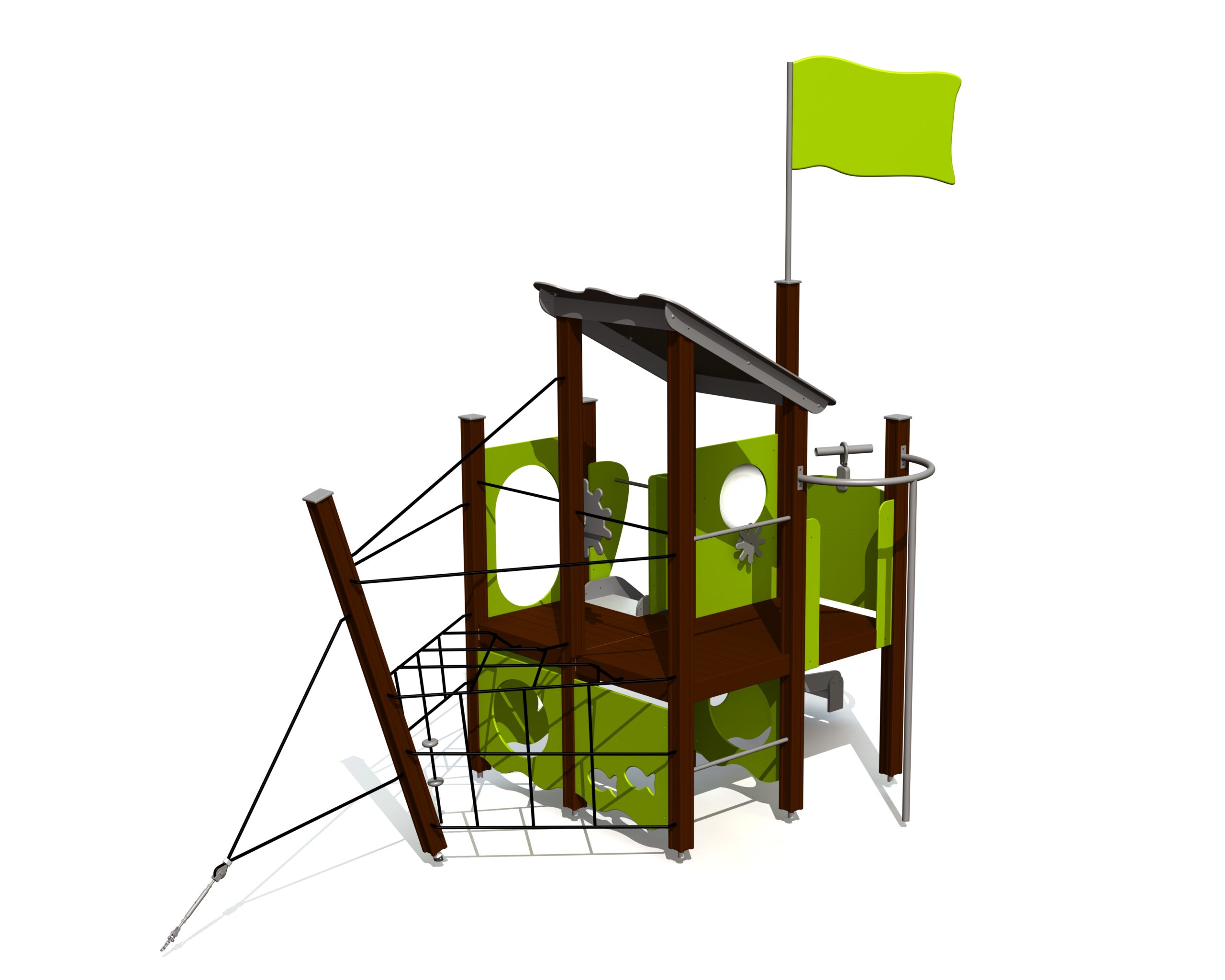 Lekskeppet är uppbyggt i två plan och utrustat med kaptensroder, två galärer, klätternät i aktern, kanonportar och mast för flagghissning. Utformningen gör att många barn kan leka samtidigt och skapa egna berättelser tillsammans.