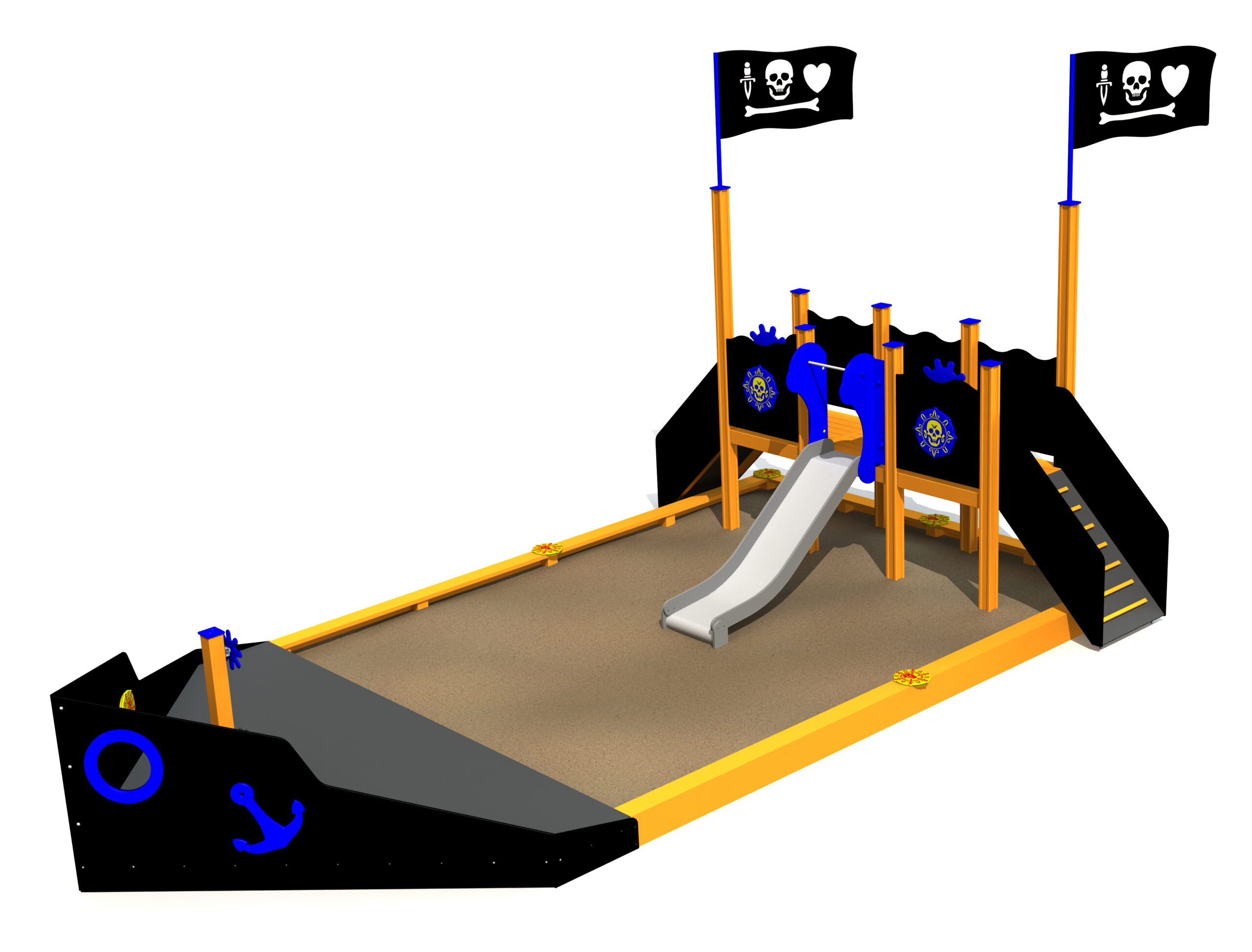 Pirattematiserad lekbåt för aktiv lek, samarbete och fantasifulla äventyr på lekplatsen.