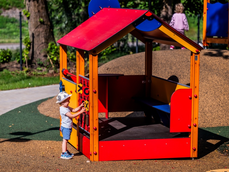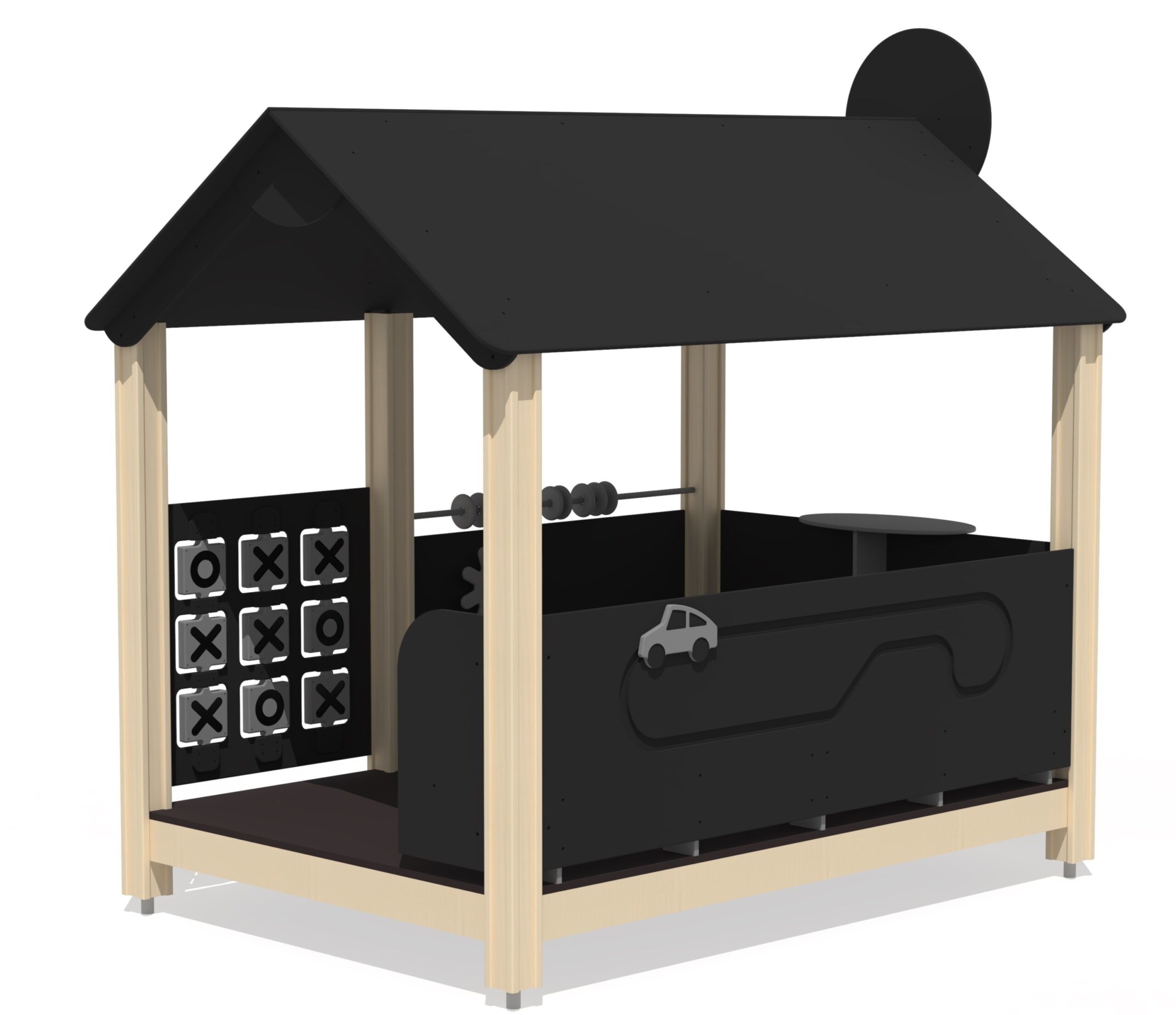 Den härliga lekstugan BUFFÉ kommer med aktivitetspaneler där barnen kan leka butik, tjata och även räkna, styra och träna motorik. Lekstugan har en lång bänk som bekvämt har plats för 6-12 barn.