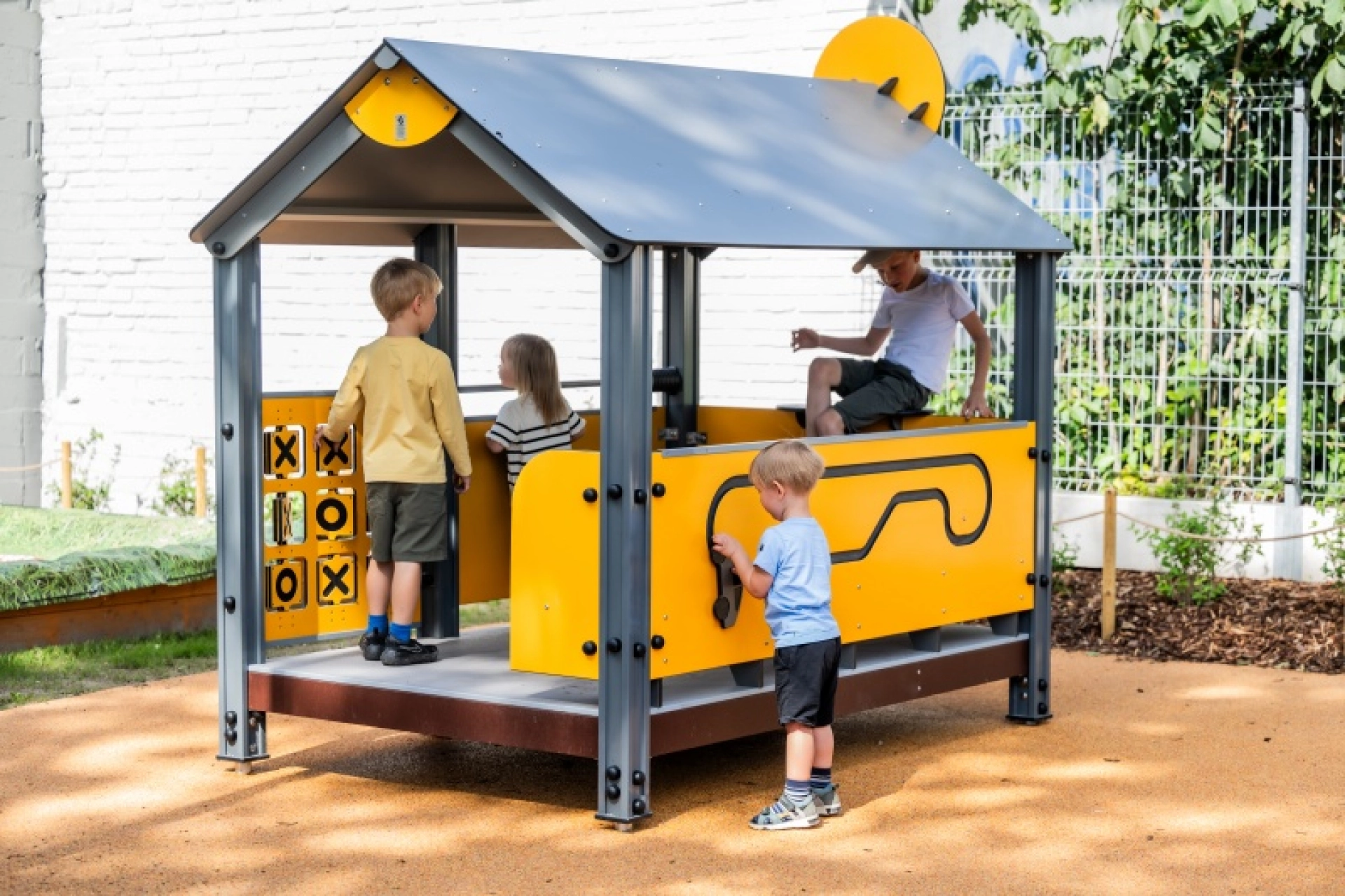 Produkten är utvecklad för lekplatser, förskolegårdar och andra offentliga utemiljöer där utrustningen behöver tåla regelbunden användning över tid. Modellen skapar en samlingspunkt för rollekar, socialt samspel och kreativ utforskning i utemiljön. Mått enligt specifikation: cirka 2,39 x 1,58 x 2,35 m. Rekommenderad ålder: 1+. En hållbar lösning för långsiktig drift och trygg användning i offentlig utemiljö.