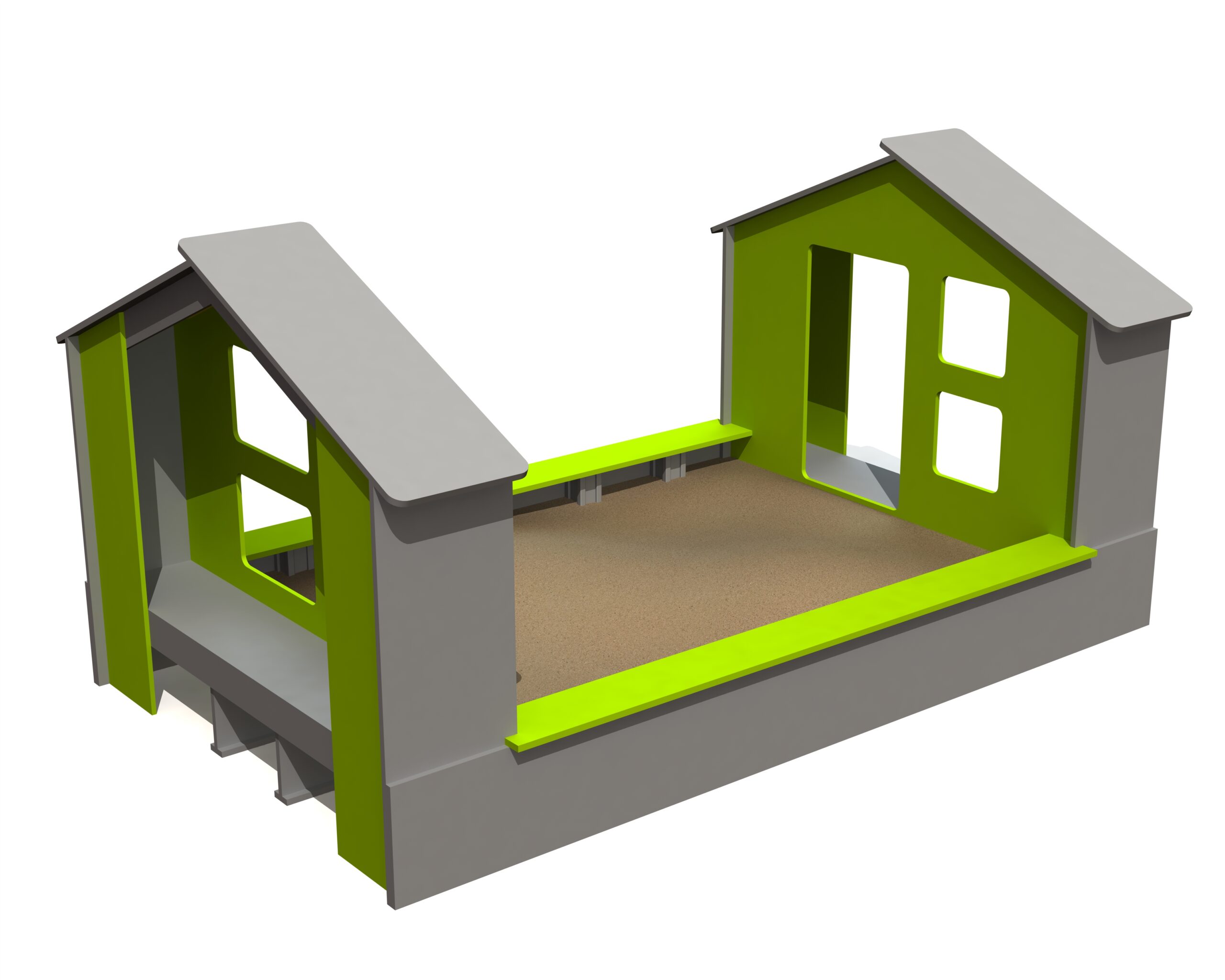 Lekhus /sandlåda är ett lekhus som tagits fram för lekplatser, förskolegårdar och andra offentliga utemiljöer. Modellen skapar en tydlig samlingspunkt för rollekar, socialt samspel och kreativ utforskning i utemiljön. Konstruktionen är avsedd för regelbunden användning över tid och passar projekt där man vill kombinera lekvärde med hållbar drift. Mått enligt specifikation: cirka 3 x 1,95 x 1,55 m. Rekommenderad ålder: 1+. En praktisk lösning för långsiktig och trygg lekmiljö.
